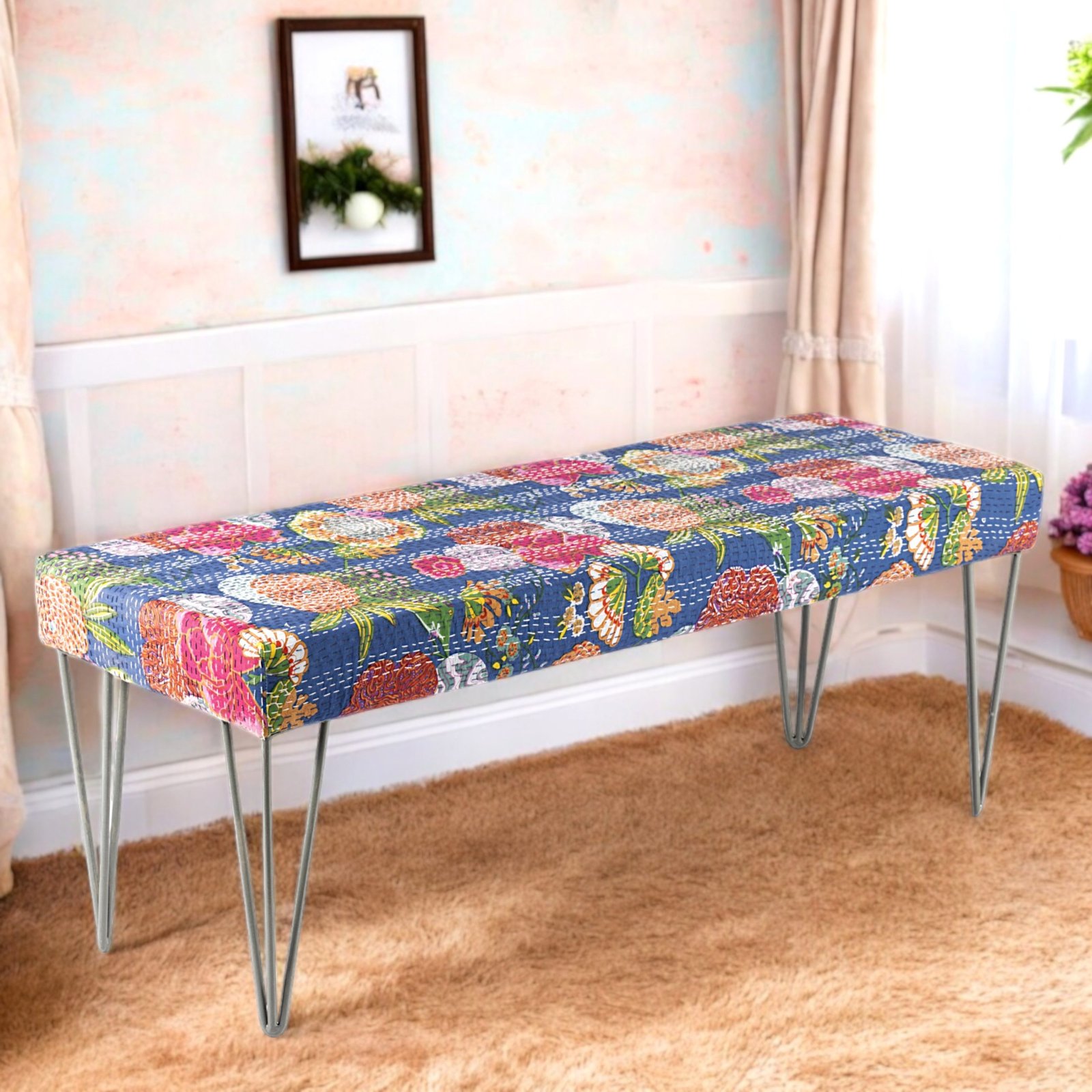 Bestone Sheesham Wood Bohemian 2 Seater Bench in Israel Print Patchwork Kantha