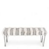 Ikiriya Belmont Sheesham Wood Mid Century 3 Seater Bench with Metal Legs in Grey Fabric with Fringes