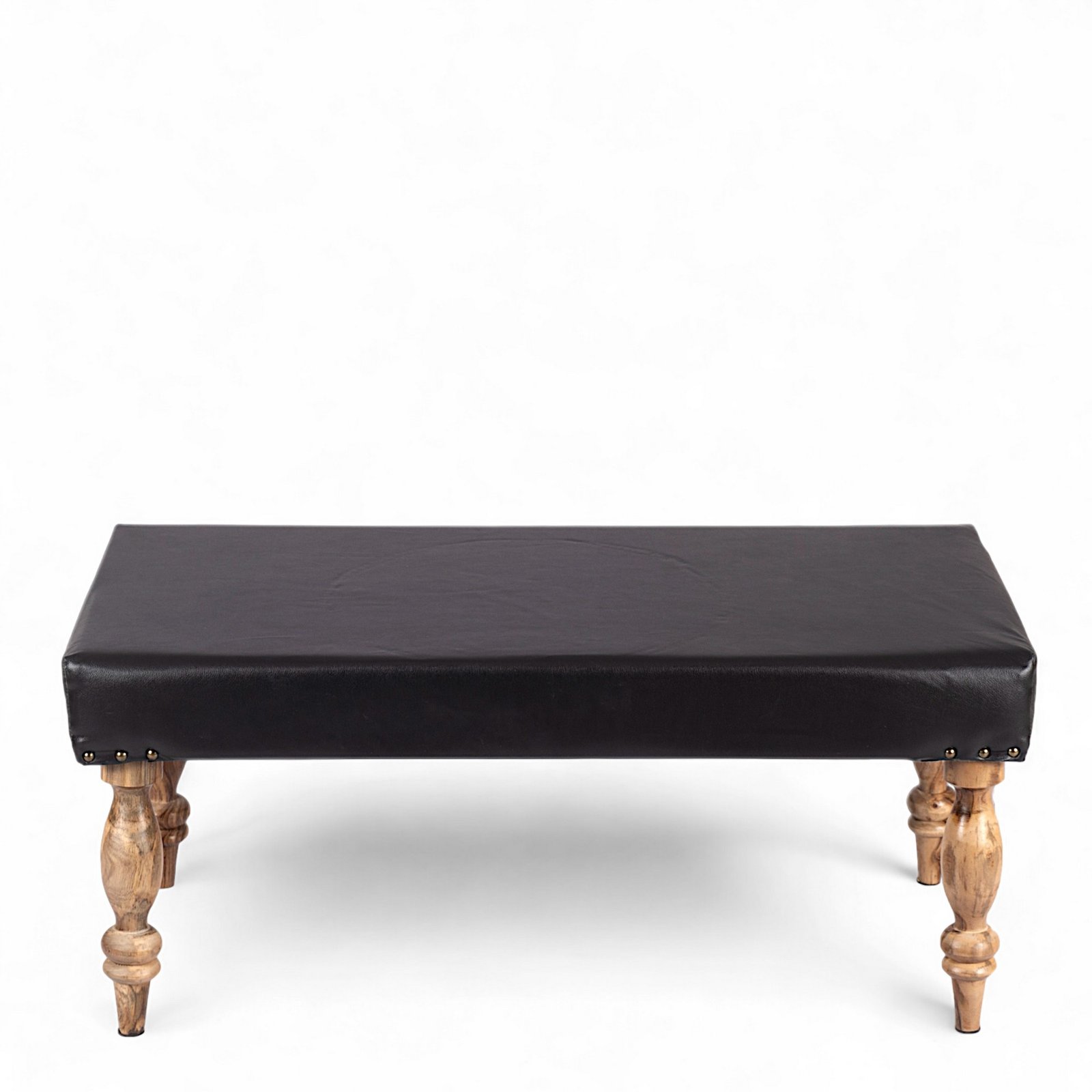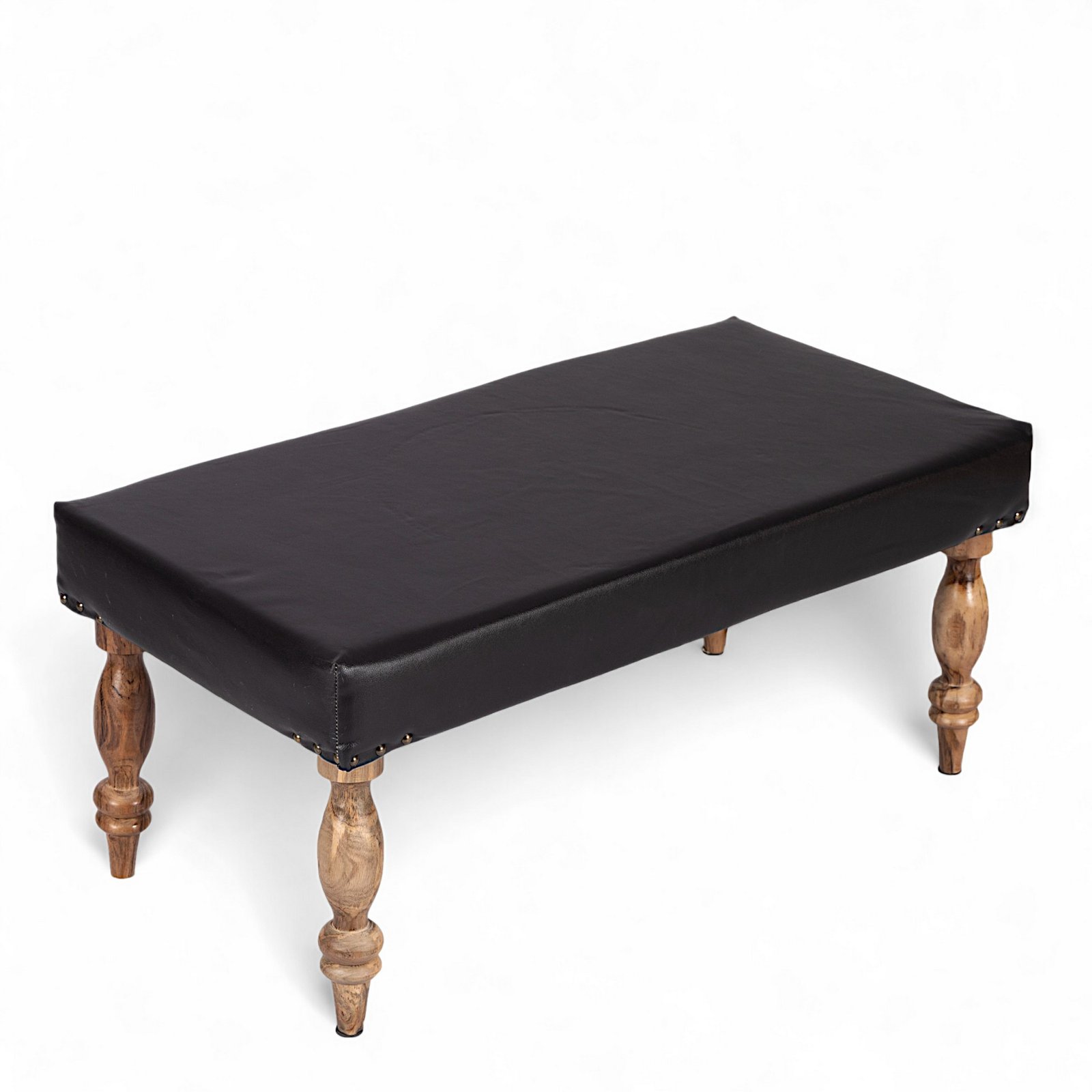 Ikiriya Bestone Sheesham Wood Accent 2 Seater Bench in Black Leatherite