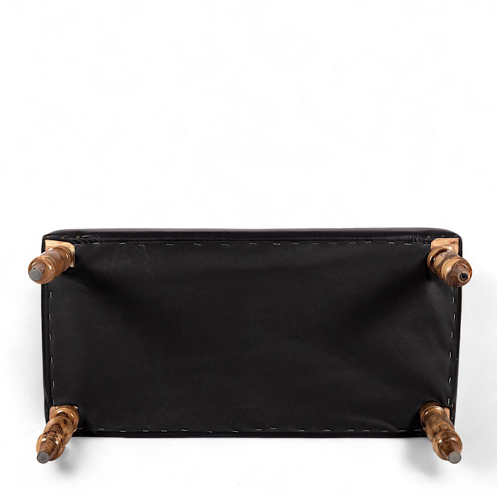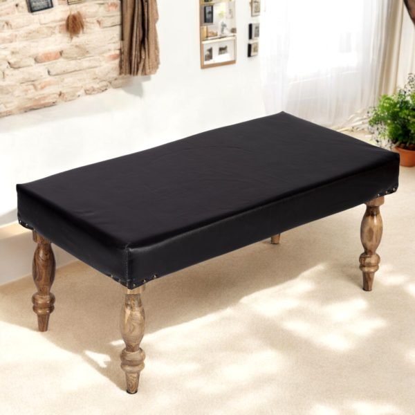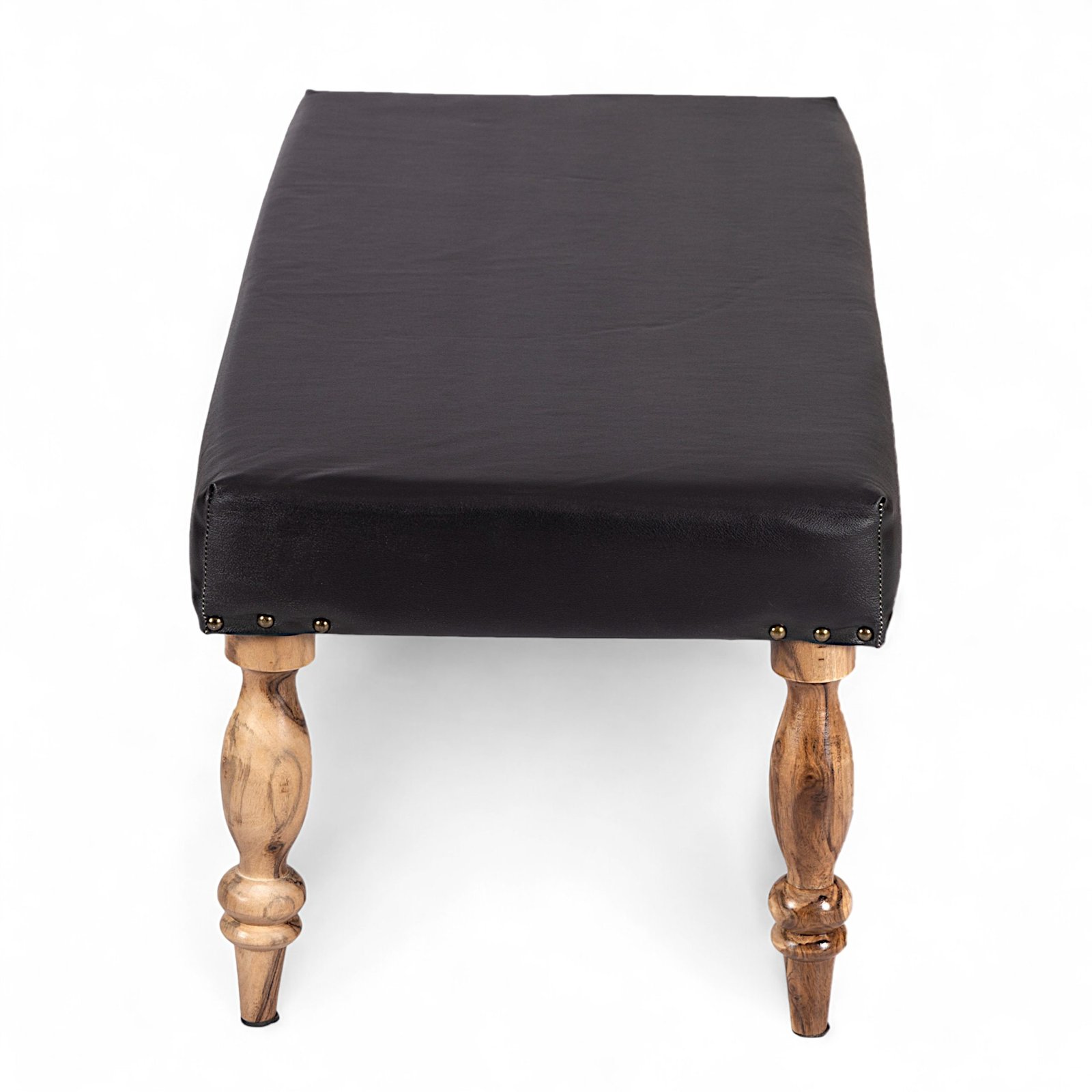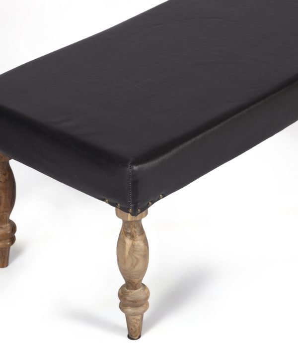 Bestone Sheesham Wood Accent 2 Seater Bench in Black Leatherite