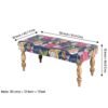 Ikiriya Bestone Sheesham Wood Mid Century 2 Seater Bench in Fruit Print Blue Kantha