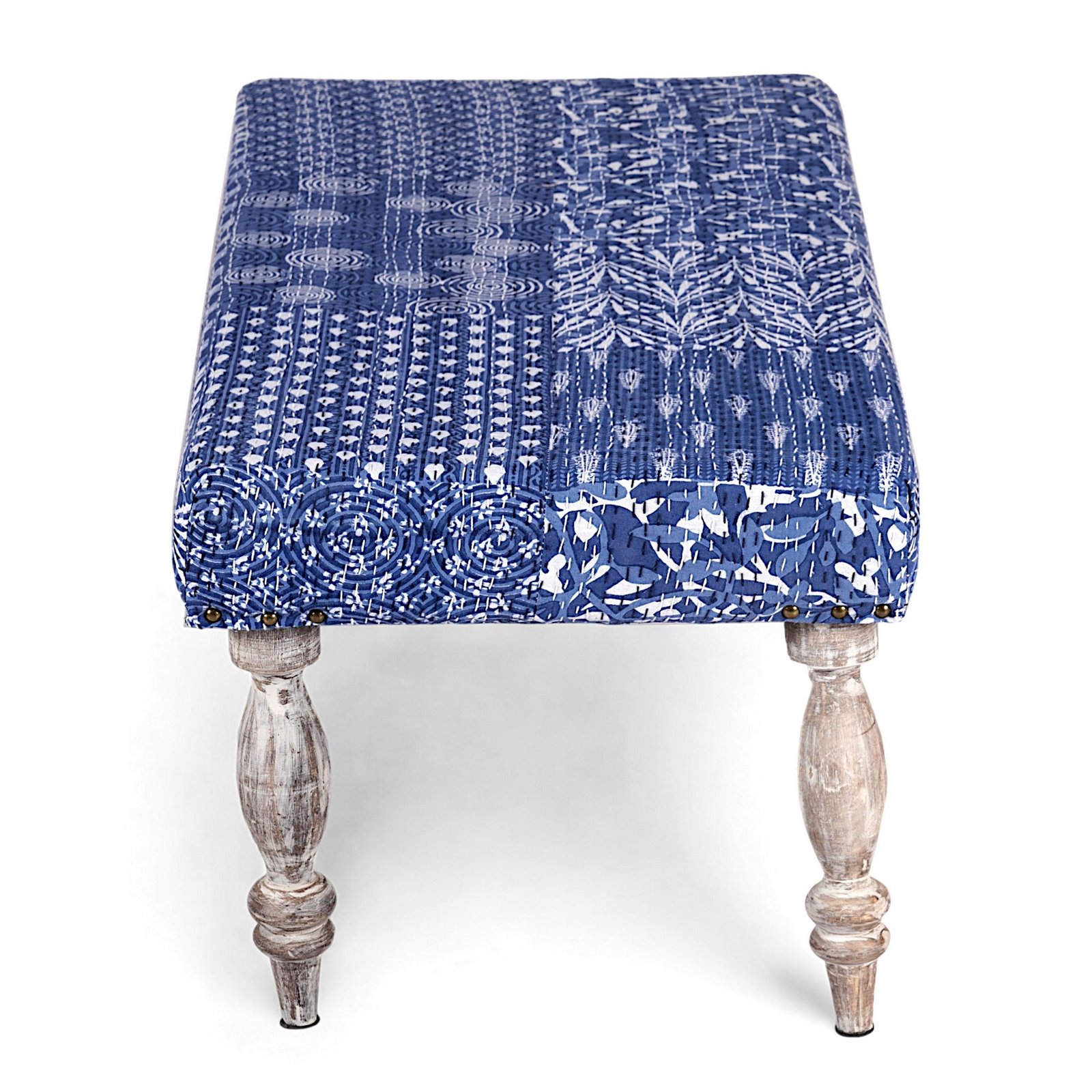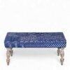 Ikiriya Bestone Sheesham Wood Mid Century 2 Seater Bench in indigo Patchwork Kantha