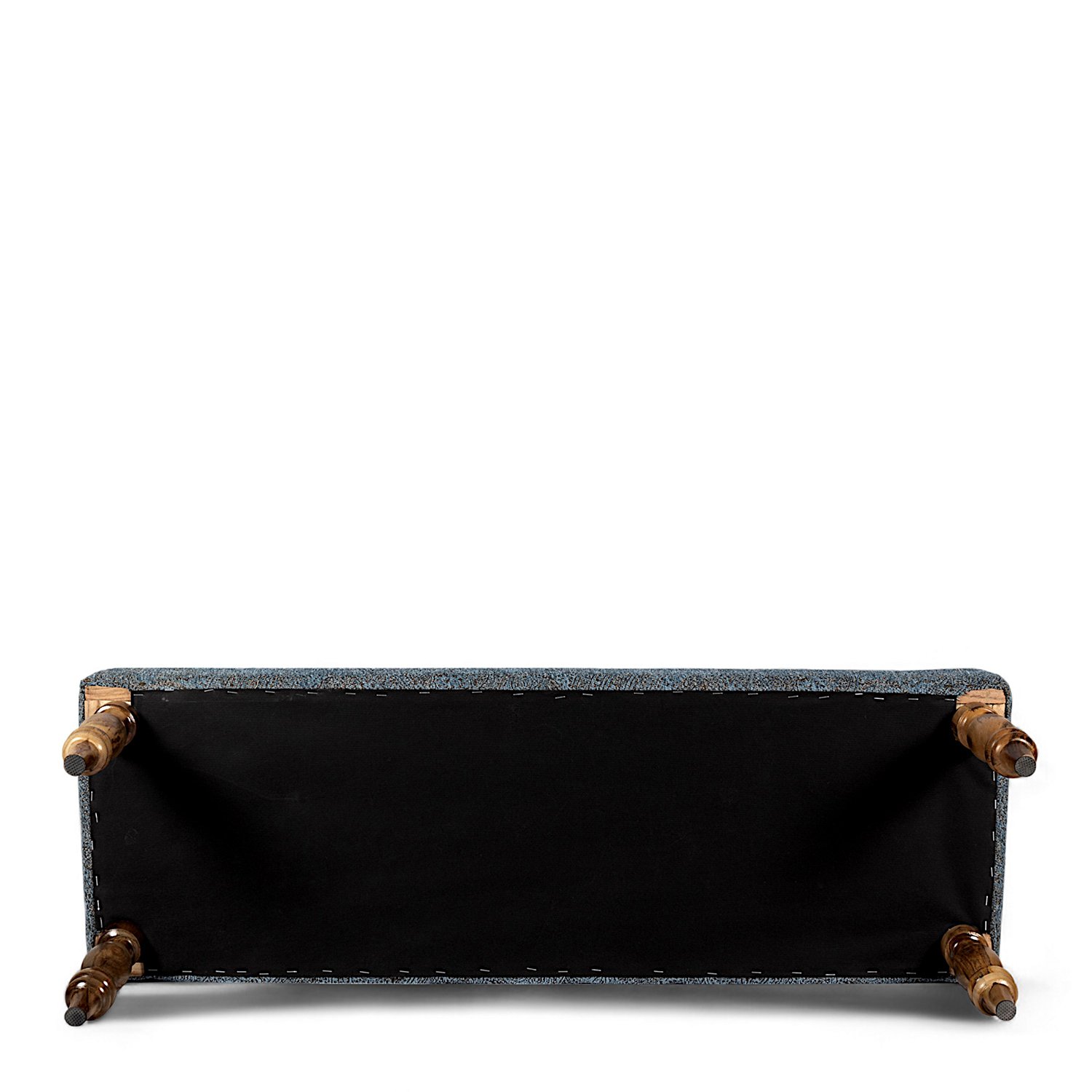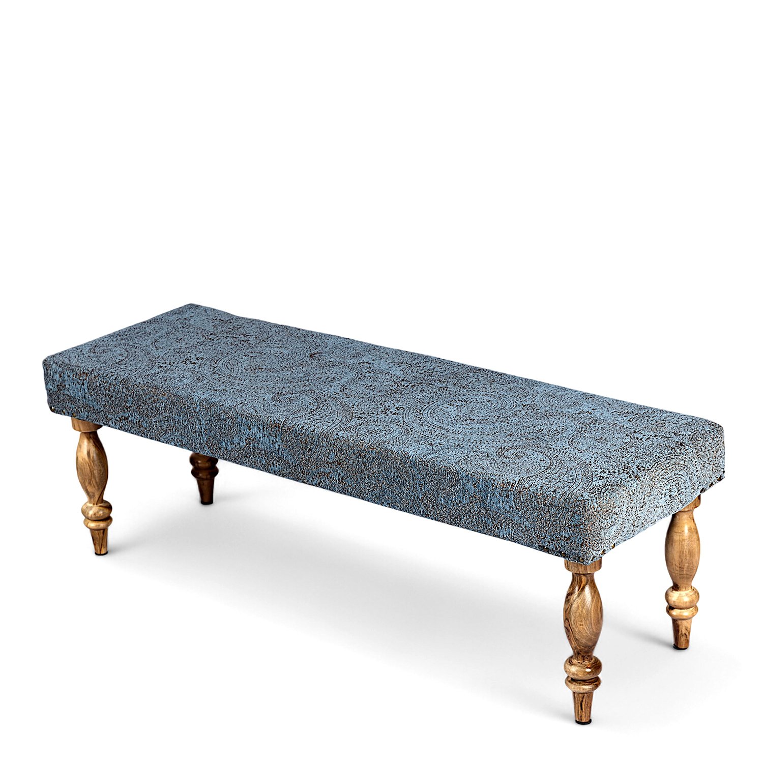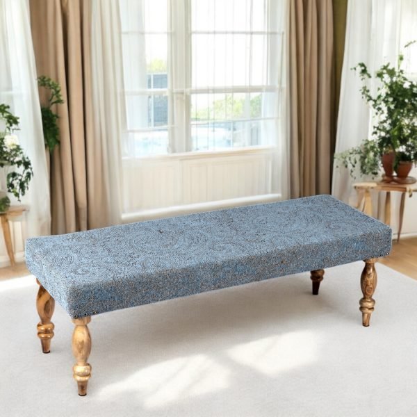 Cairo Sheesham Wood Accent 3 Seater Bench in Blue Jacquard Work Fabric
