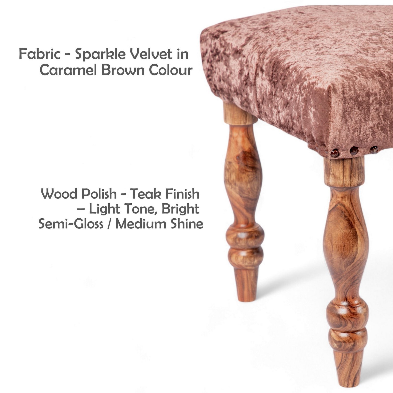 • Ikiriya Cairo Sheesham Wood Accent 3 Seater Bench in Caramel Brown Sparkle Velvet