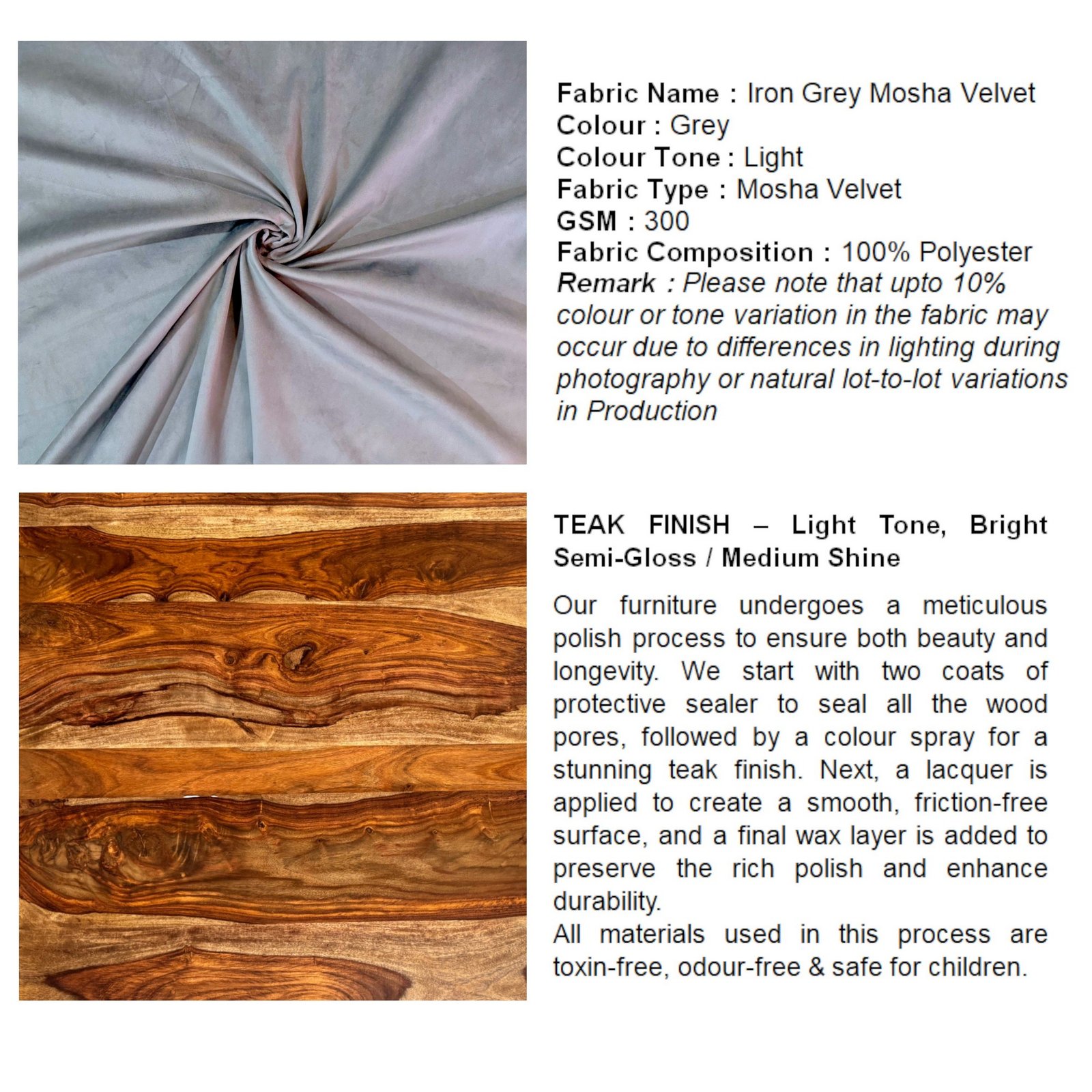 - Enjoy the understated elegance of Iron Grey Mosha Velvet, ideal for creating a contemporary aesthetic.