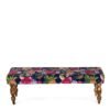 Ikiriya Cairo Sheesham Wood Mid Century 3 Seater Bench in Fruit Print Blue Kantha
