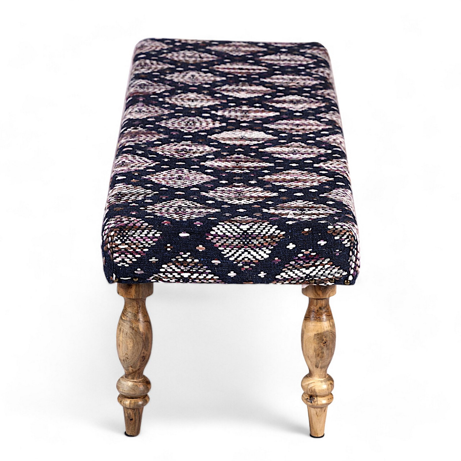 • Ikiriya Asteria Sheesham Wood Bohemian 3 Seater Bench in Israel Print Patchwork Kantha