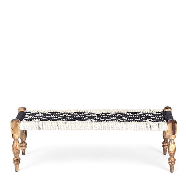 - Experience the charm of Maachi Work with this handcrafted bench from Jaipur. Woven by skilled artisans using vibrant, durable strong cotton ropes, it showcases intricate patterns made entirely by hand, preserving the traditional craft without any machine involvement.