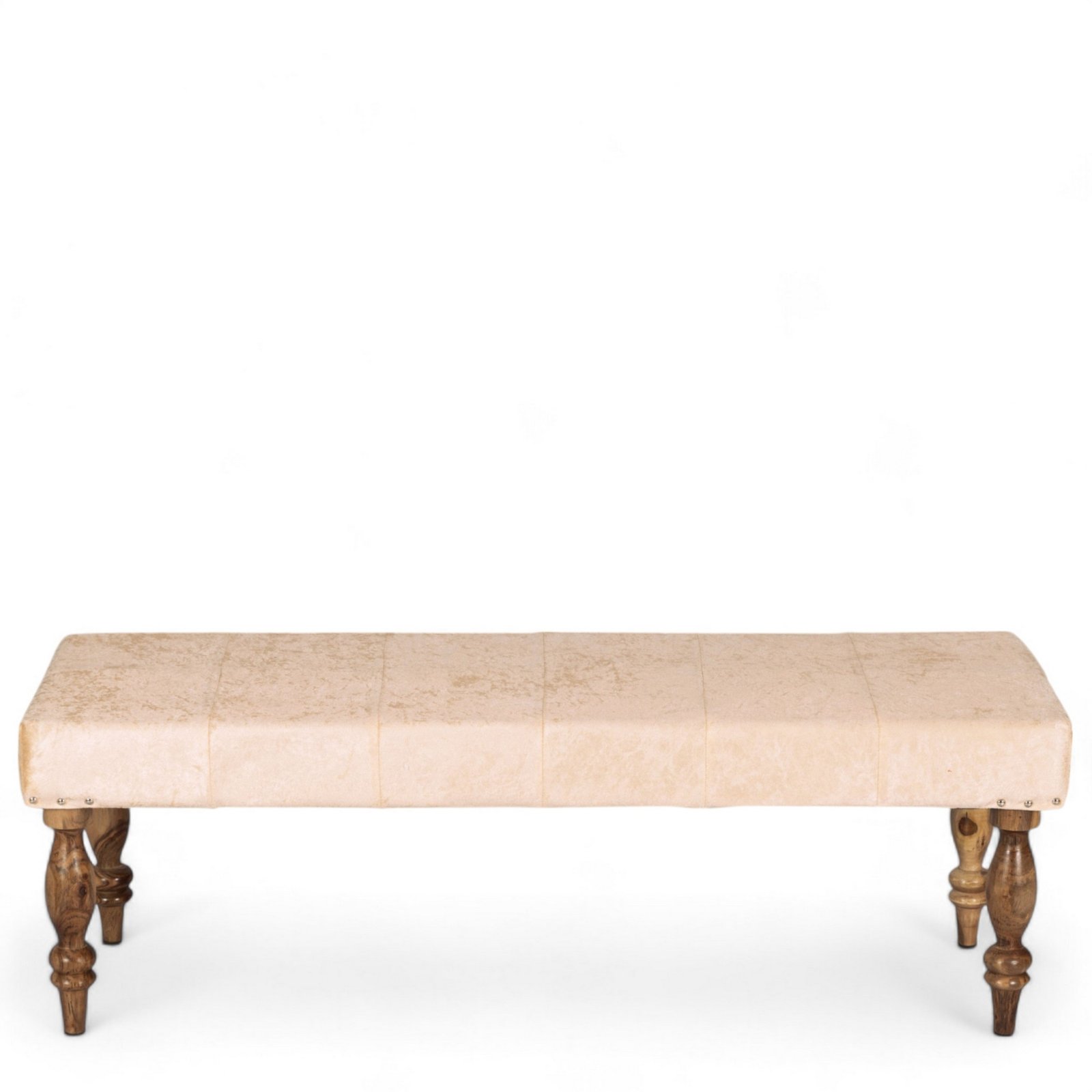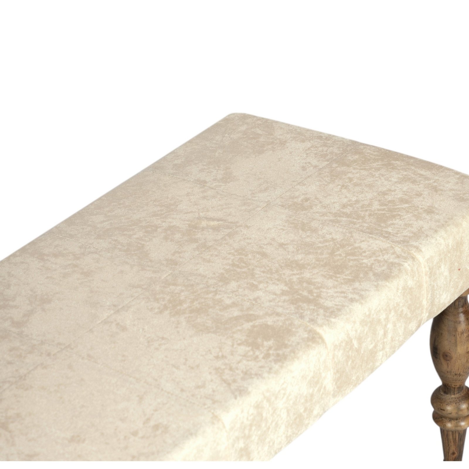 Ikiriya Cairo Sheesham Wood Accent 3 Seater Bench in Beige Sparkle Velvet