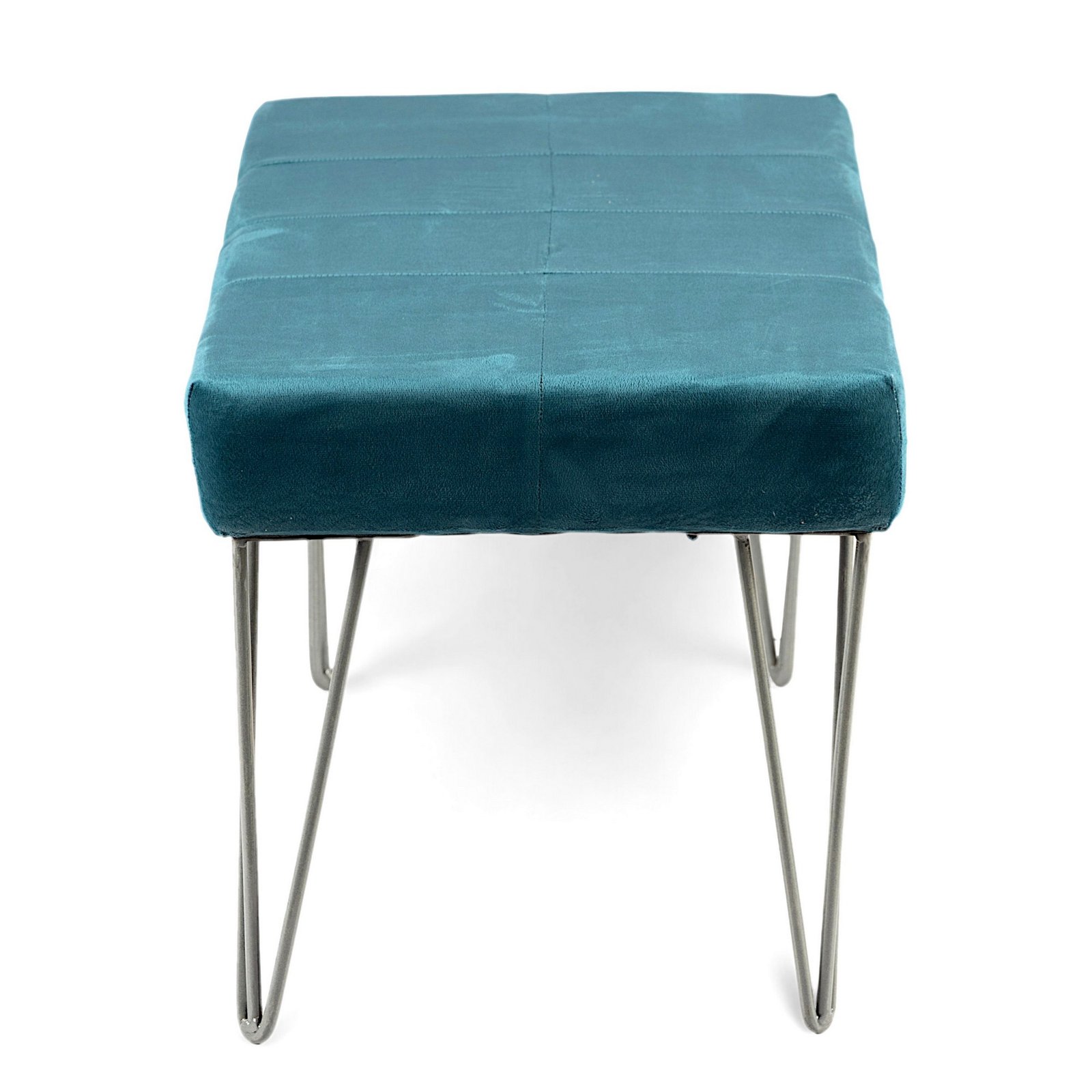 • Ikiriya Velas Sheesham Wood Accent 2 Seater Bench with Metal Legs in Turquoise Sea Velvet