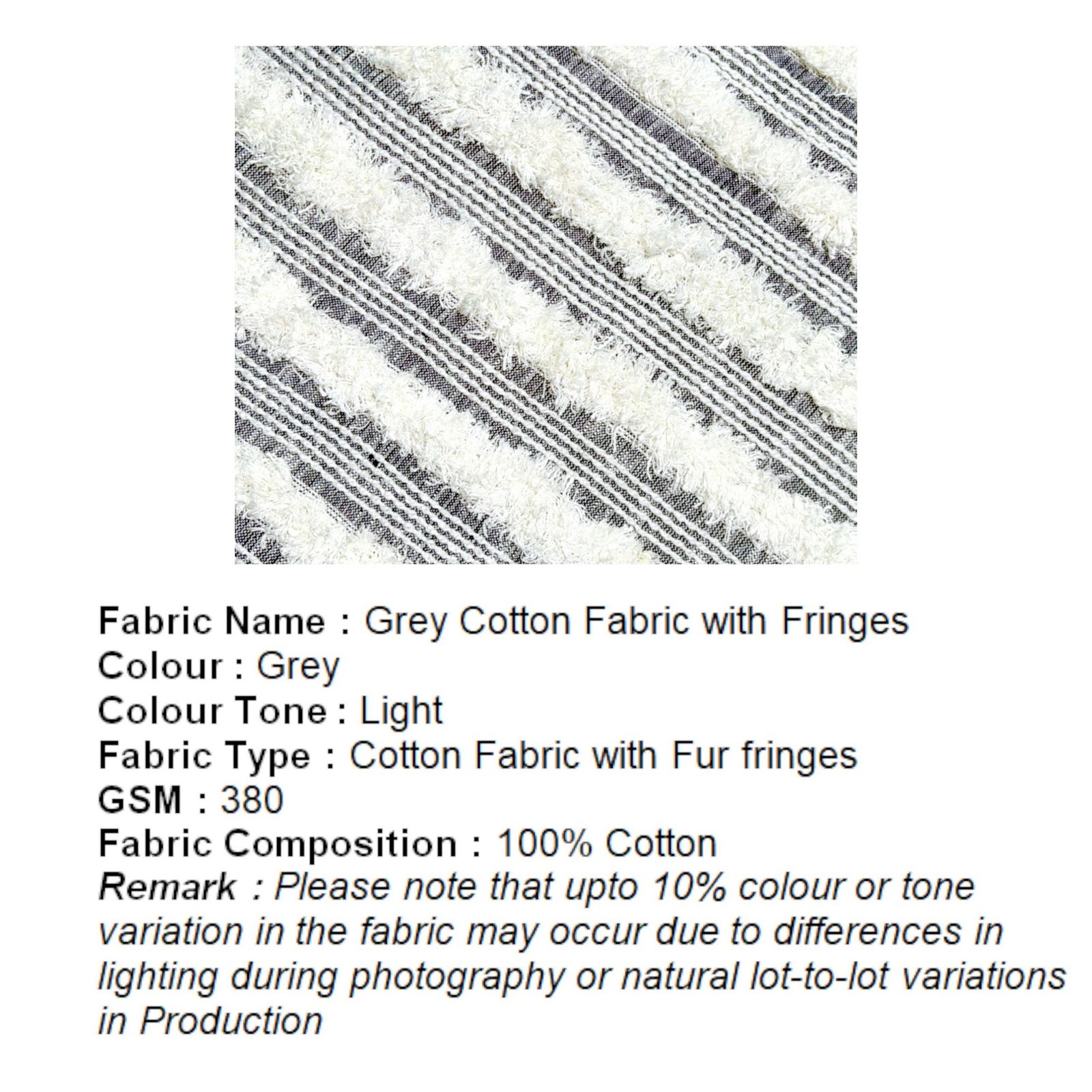 . Fabric Name: Grey Cotton Fabric with Fringes