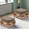 Ikiriya Amber Sheesham Wood Contemporary Square Set of 2 Foot Stools in Teak Finish with Jute Brown Cushion