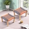 Ikiriya Riaza Sheesham Wood Vintage Square Maachi Foot Stool in Orange & Grey Rope Canning