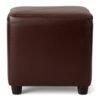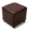 Ikiriya Asteria Solid Wood Contemporary Square Pouffee in Brown Leatherite Upholstery