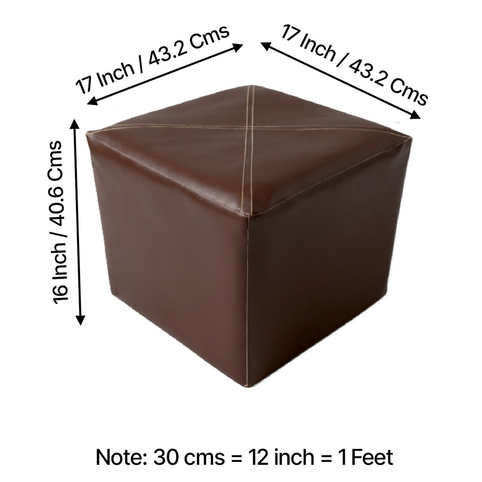 Ikiriya Asteria Solid Wood Contemporary Square Pouffee in Brown Leatherite Upholstery