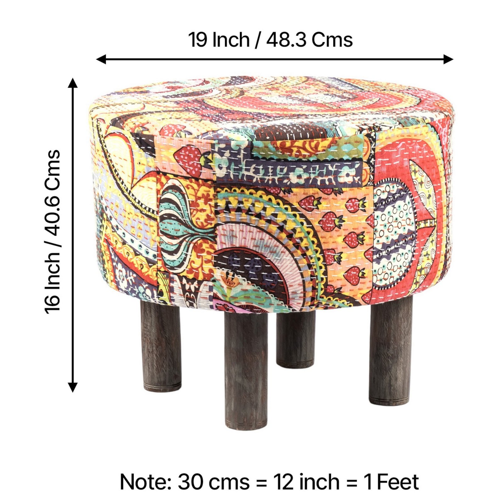. Dimensions & Weight: Dimensions (WxDxH) – 19x19x16 inches / 48.3×48.3×40.6 Cms; Seating Height – 0 inch / 0 cms; Net Weight – 6.1 Kgs