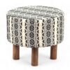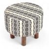 Ikiriya Collio Acacia Wood Parisian Round Ottoman in Multi-Colour Jacquard Work Fabric Upholstery