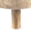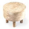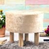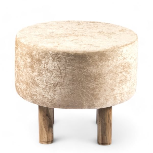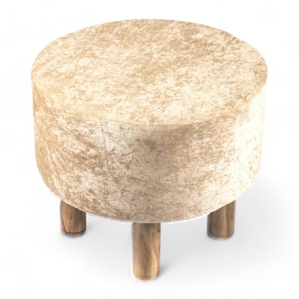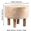 Morgan Acacia Wood Accent Round Pouf Stool in Beige Sparkle Velvet Upholstery