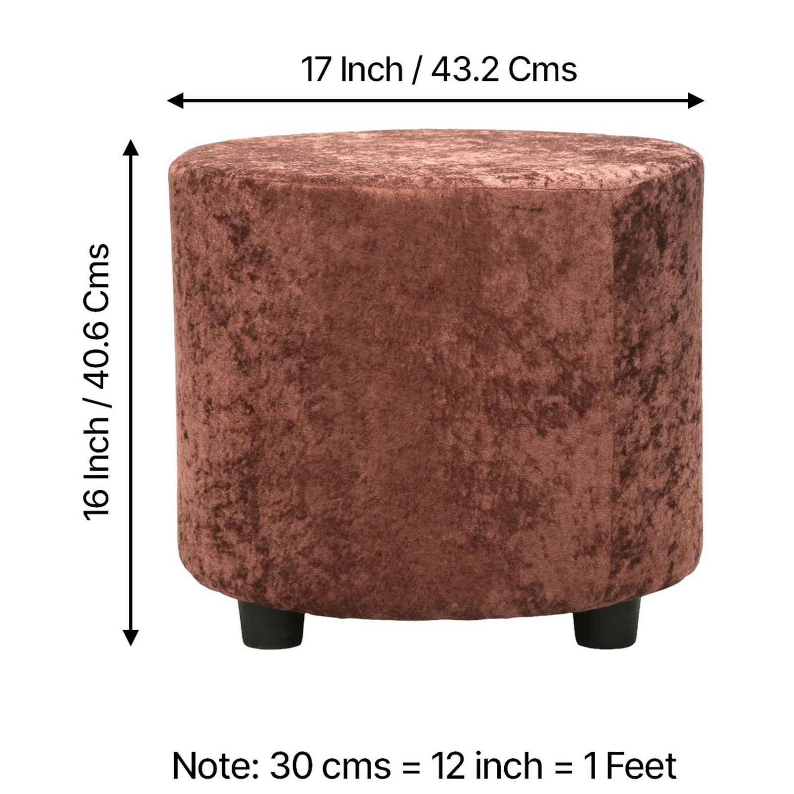 . Dimensions & Weight: Dimensions (WxDxH) – 17x17x16 inches / 43.2×43.2×40.6 Cms; Seating Height – 0 inch / 0 cms; Net Weight – 4.8 Kgs
