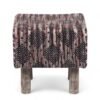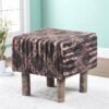 Ikiriya Verona Acacia Wood Parisian Square Pouf Stool in Multi-Colour Jacquard Work Fabric Upholstery
