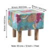Ikiriya Verona Acacia Wood Mid Century Square Pouf Stool in Sea Green Fruit Print Kantha Upholstery
