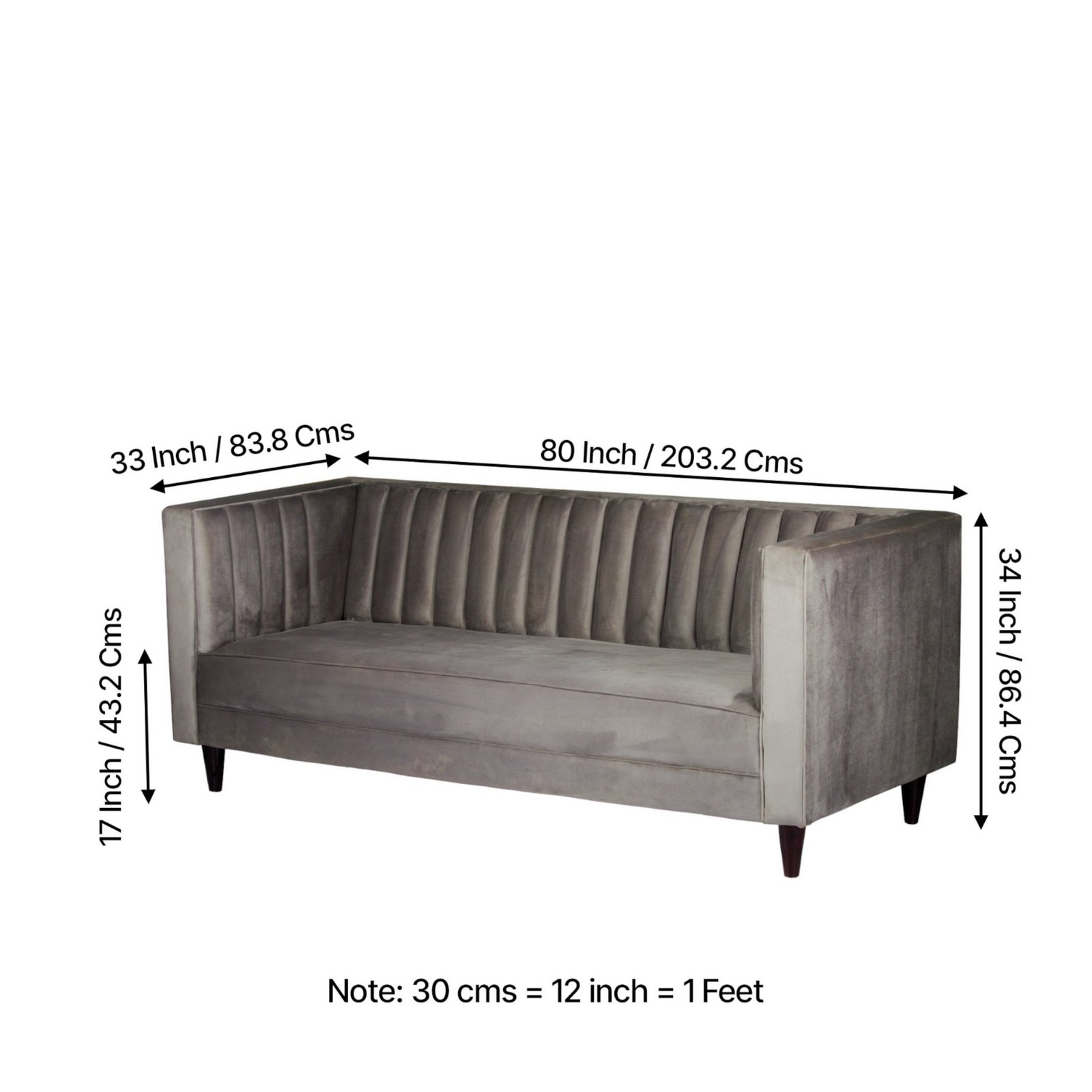Ikiriya Camilla Solid Wood Contemporary 3 Seater Sofa in Iron Grey Velvet Upholstery