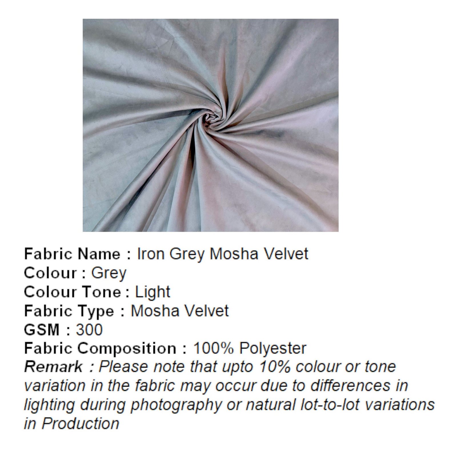- Enjoy the understated elegance of Iron Grey Mosha Velvet, ideal for creating a contemporary aesthetic.