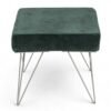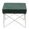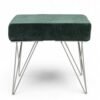 Ikiriya Asansol Sheesham Wood Accent Square Stool with Metal Legs in Dark Green Velvet Upholstery