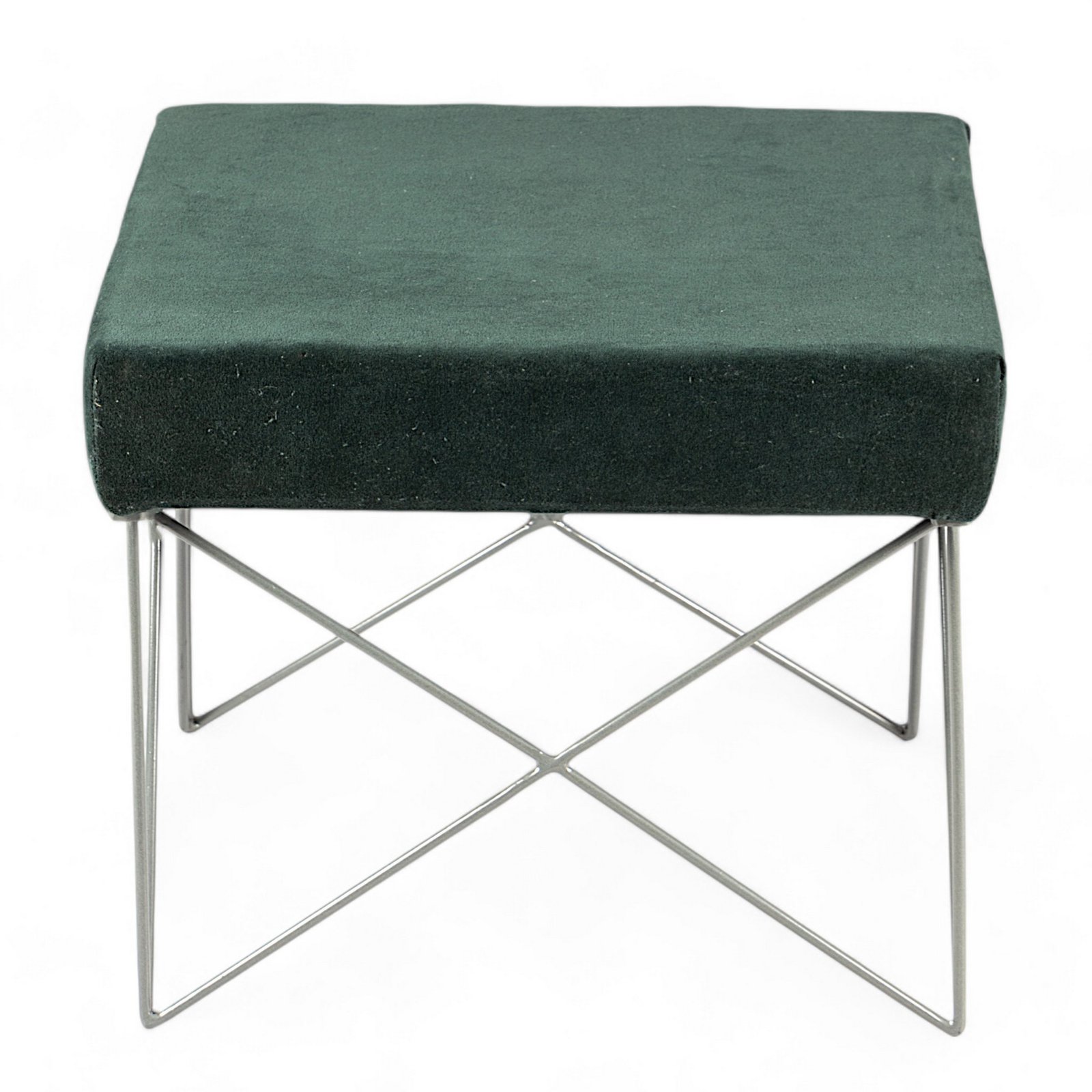 Ikiriya Asansol Sheesham Wood Accent Square Stool with Metal Legs in Dark Green Velvet Upholstery