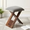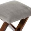 Ikiriya Dayton Sheesham Wood Accent Square Foldable Stool in Iron Grey Velvet Upholstery