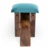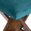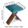 Ikiriya Dayton Sheesham Wood Accent Square Foldable Stool in Turquoise Sea Velvet Upholstery