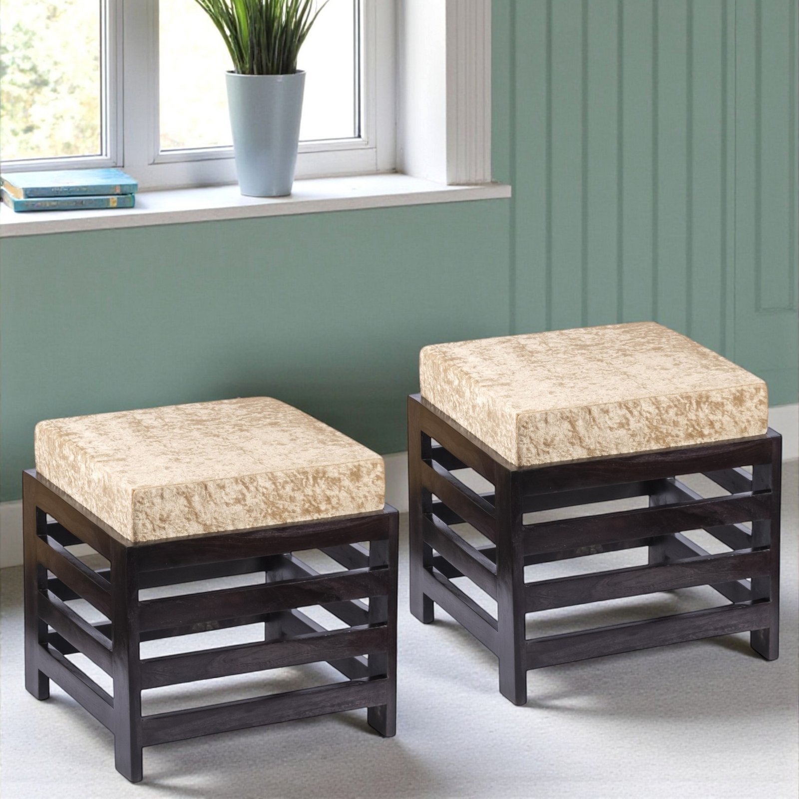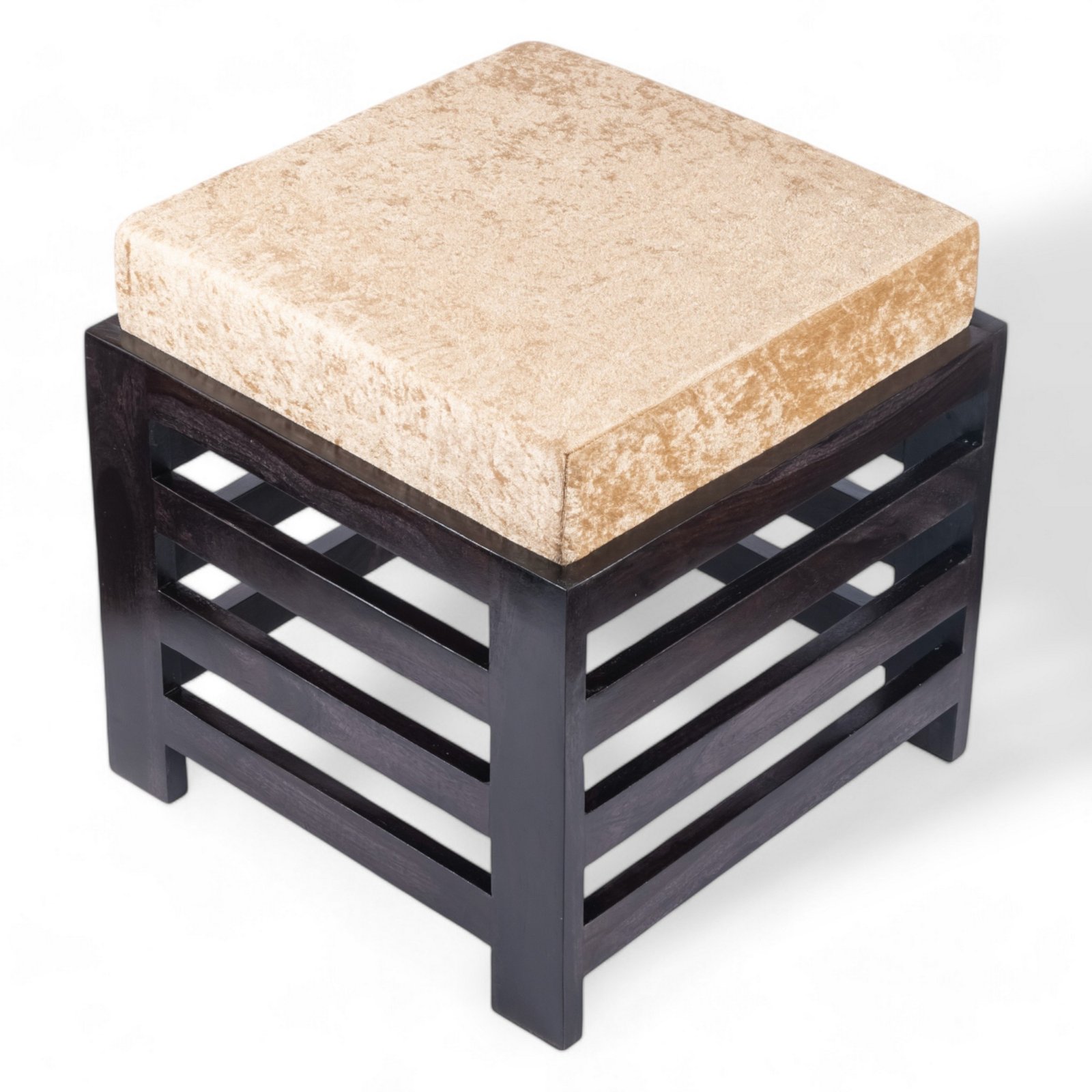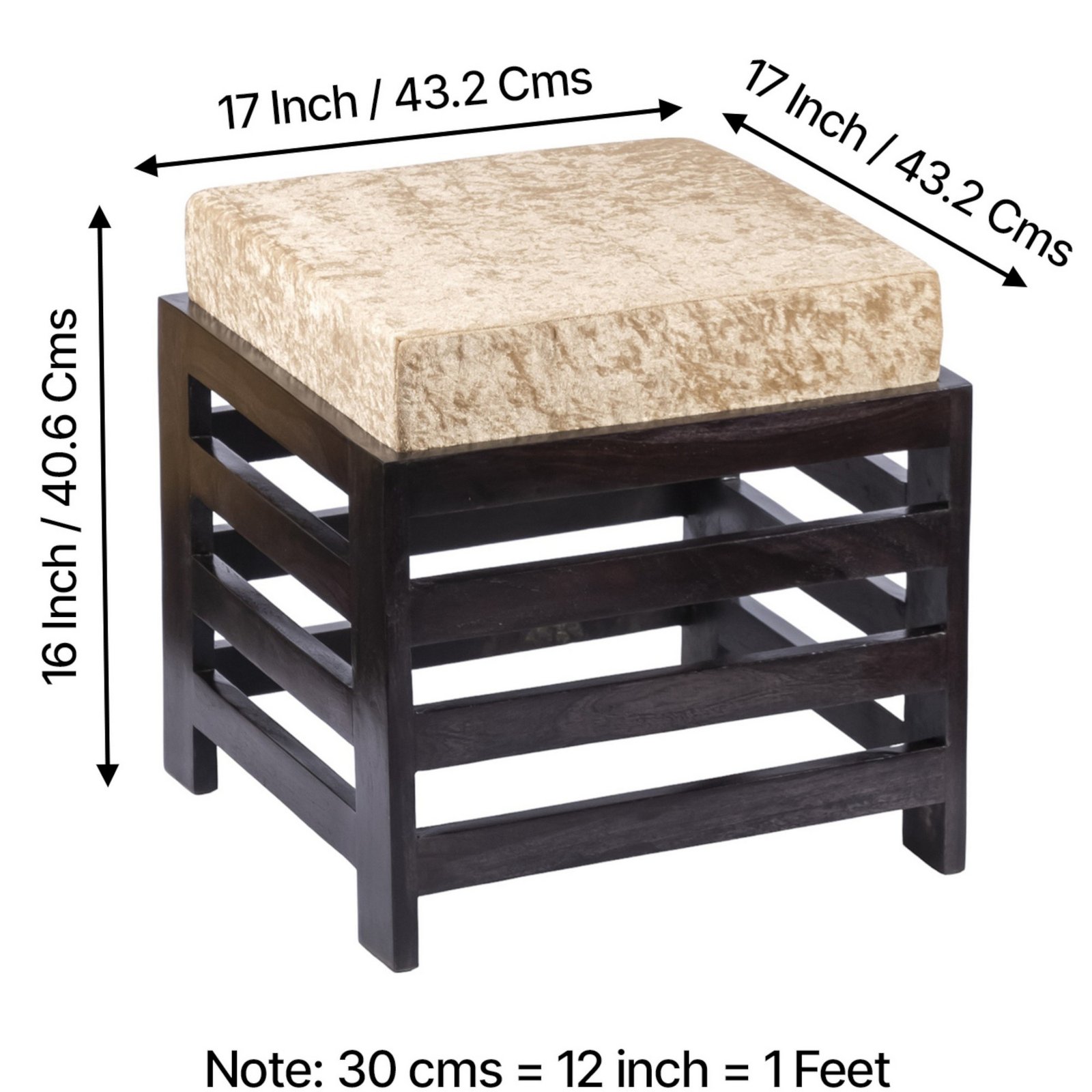 Ikiriya Houston Sheesham Wood Contemporary Square Stool in Extra Dark Mahagony Finish with Beige Sparkle Velvet Cushion