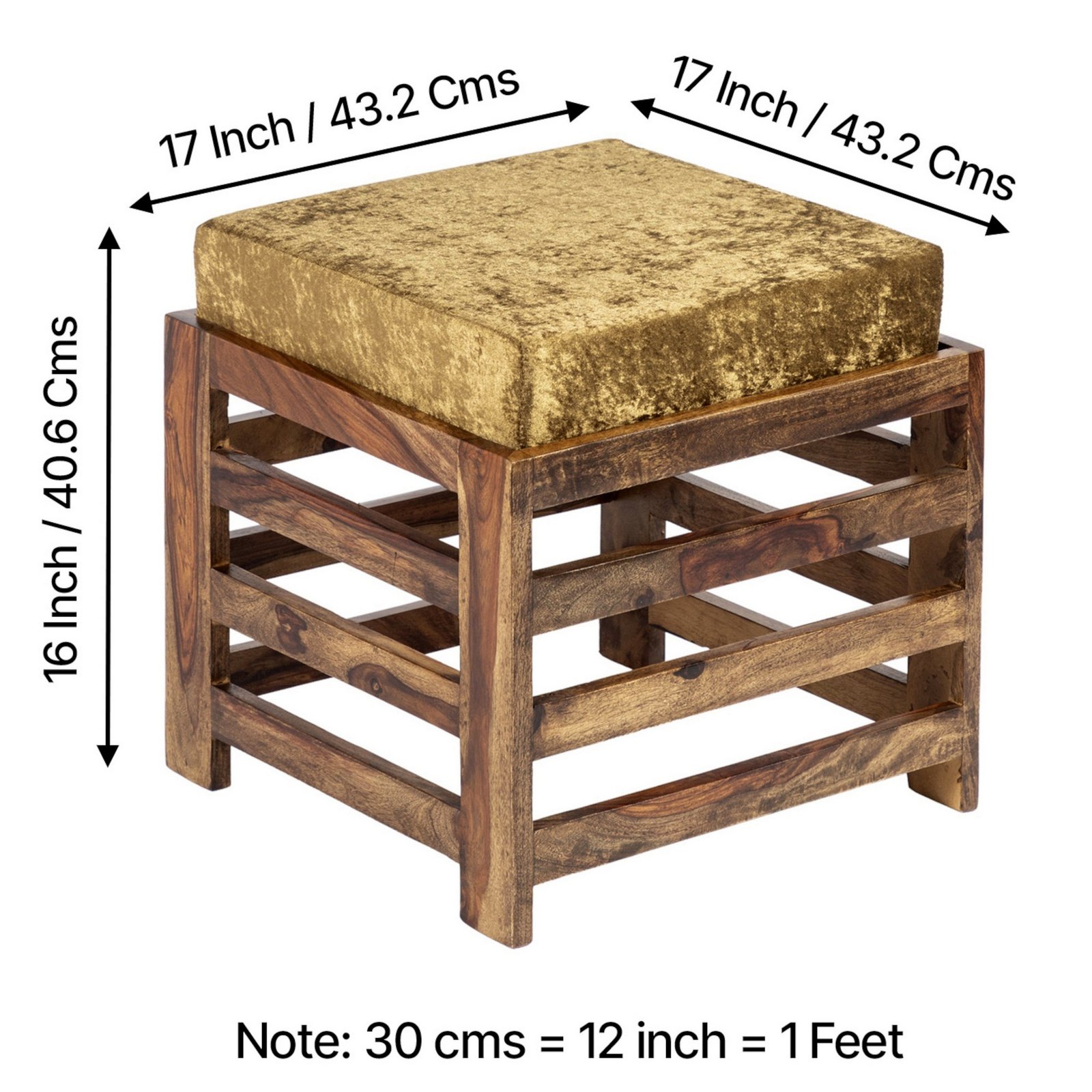 - Dimensions (WxDxH): Stool (Including Cushion) – 17x17x16 Inch / 43.2×43.2×40.6 Cms; Weight – 6.675 Kgs | Cushion – 15.75×15.75×3.5 Inch / 40x40x8.9 Cms