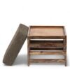 Ikiriya Houston Sheesham Wood Mid Century Square Stool in Teak Finish with Grey Brid Print Kantha Cushion