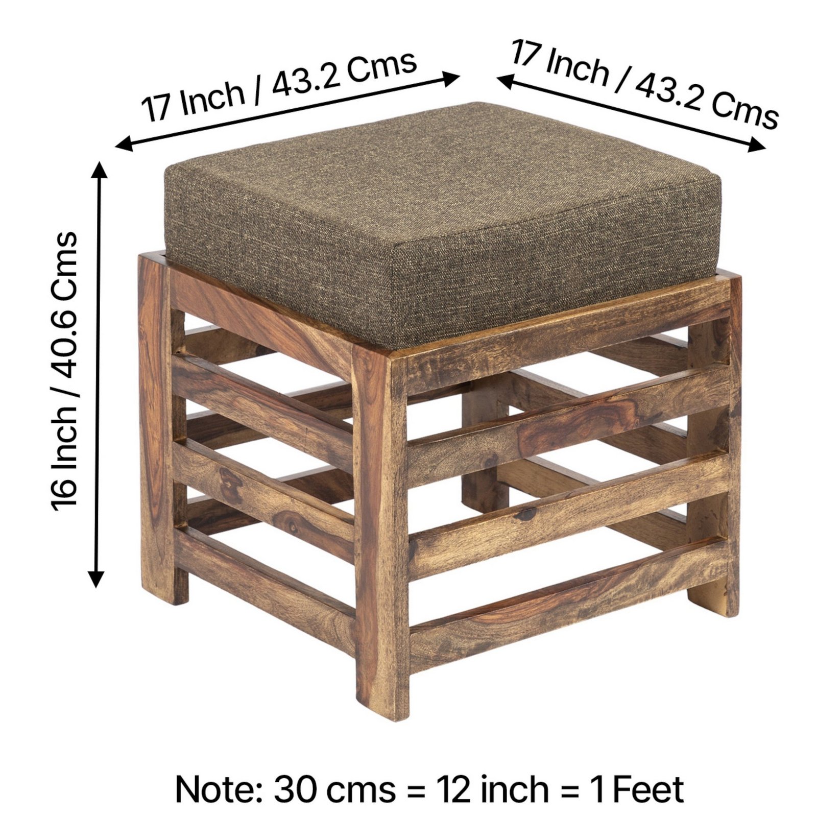 - Dimensions (WxDxH): Stool (Including Cushion) – 17x17x16 Inch / 43.2×43.2×40.6 Cms; Weight – 6.675 Kgs | Cushion – 15.75×15.75×3.5 Inch / 40x40x8.9 Cms