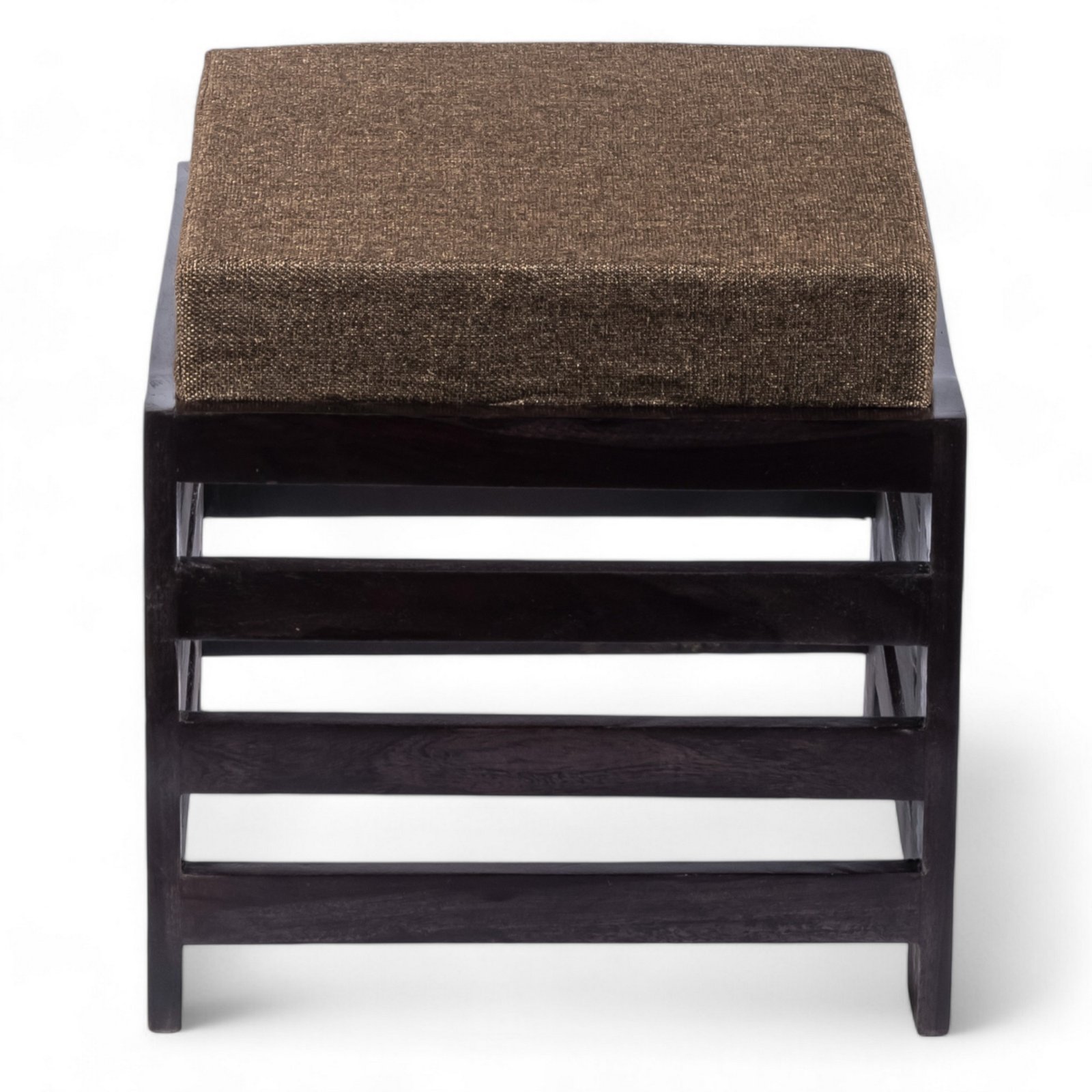 Ikiriya Houston Sheesham Wood Contemporary Square Stool in Extra Dark Mahagony Finish with Jute Brown Cushion