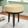 Ikiriya Lisbon Sheesham Wood Accent Round Stool in Beige Mossy Fabric Upholstery