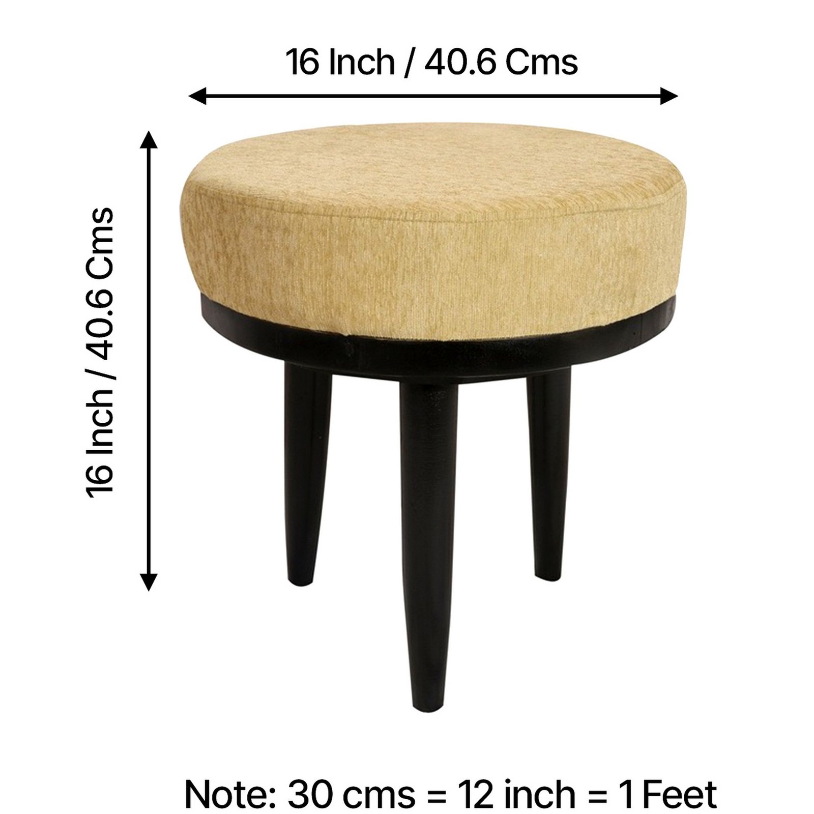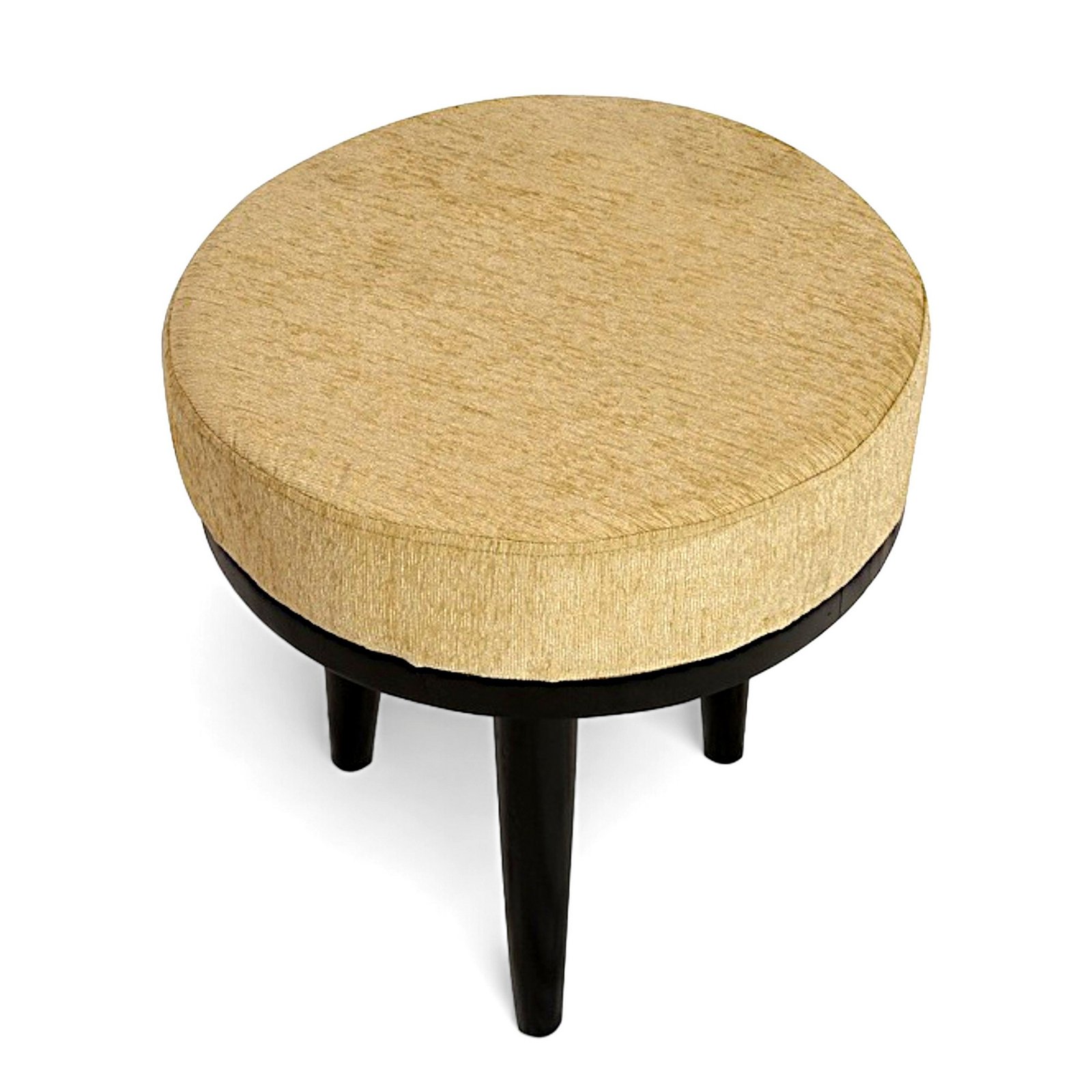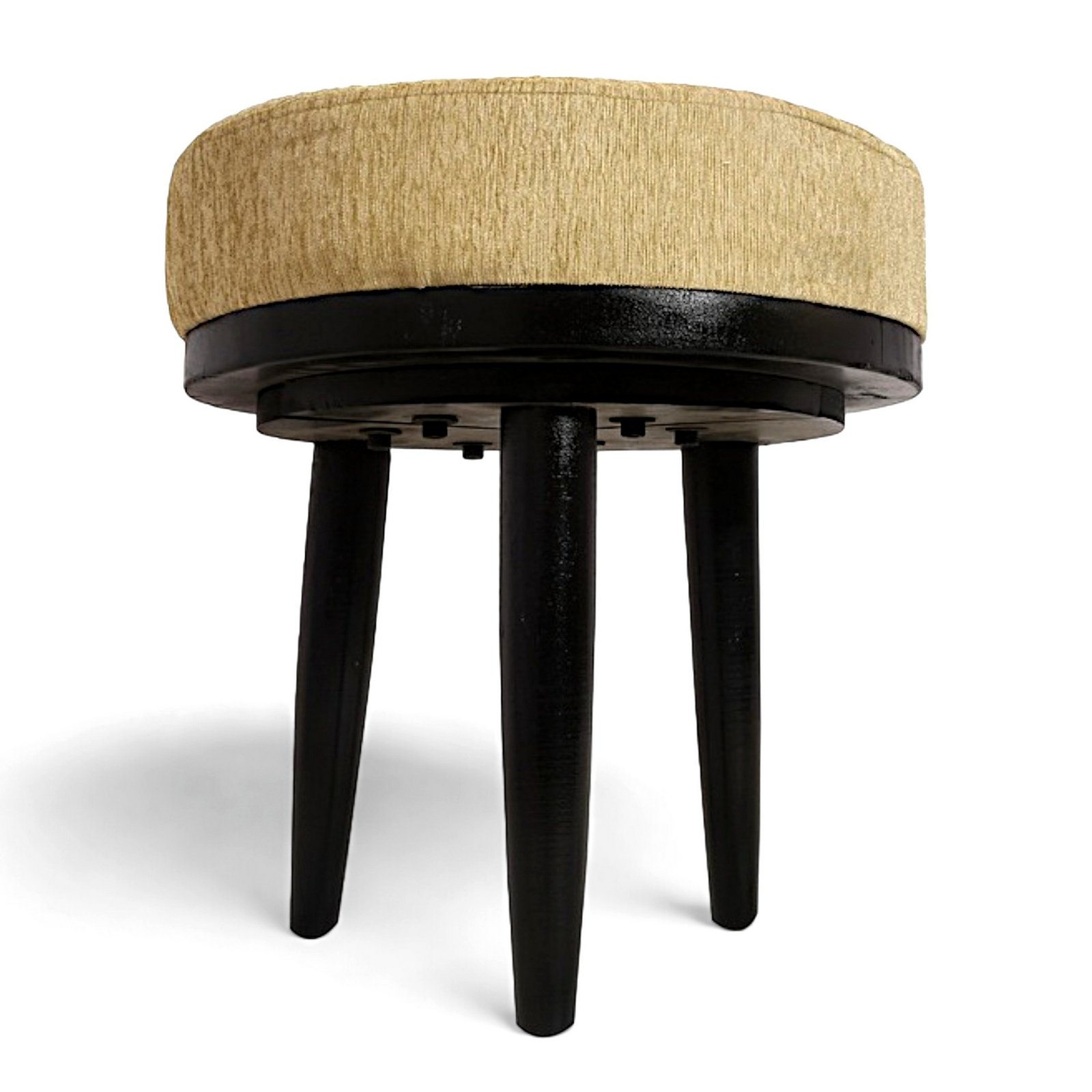 Ikiriya Lisbon Sheesham Wood Accent Round Stool in Beige Mossy Fabric Upholstery
