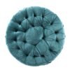 Ikiriya Louisville Acacia Wood Accent Round Pouf Stool in Turquoise Sea Velvet Upholstery