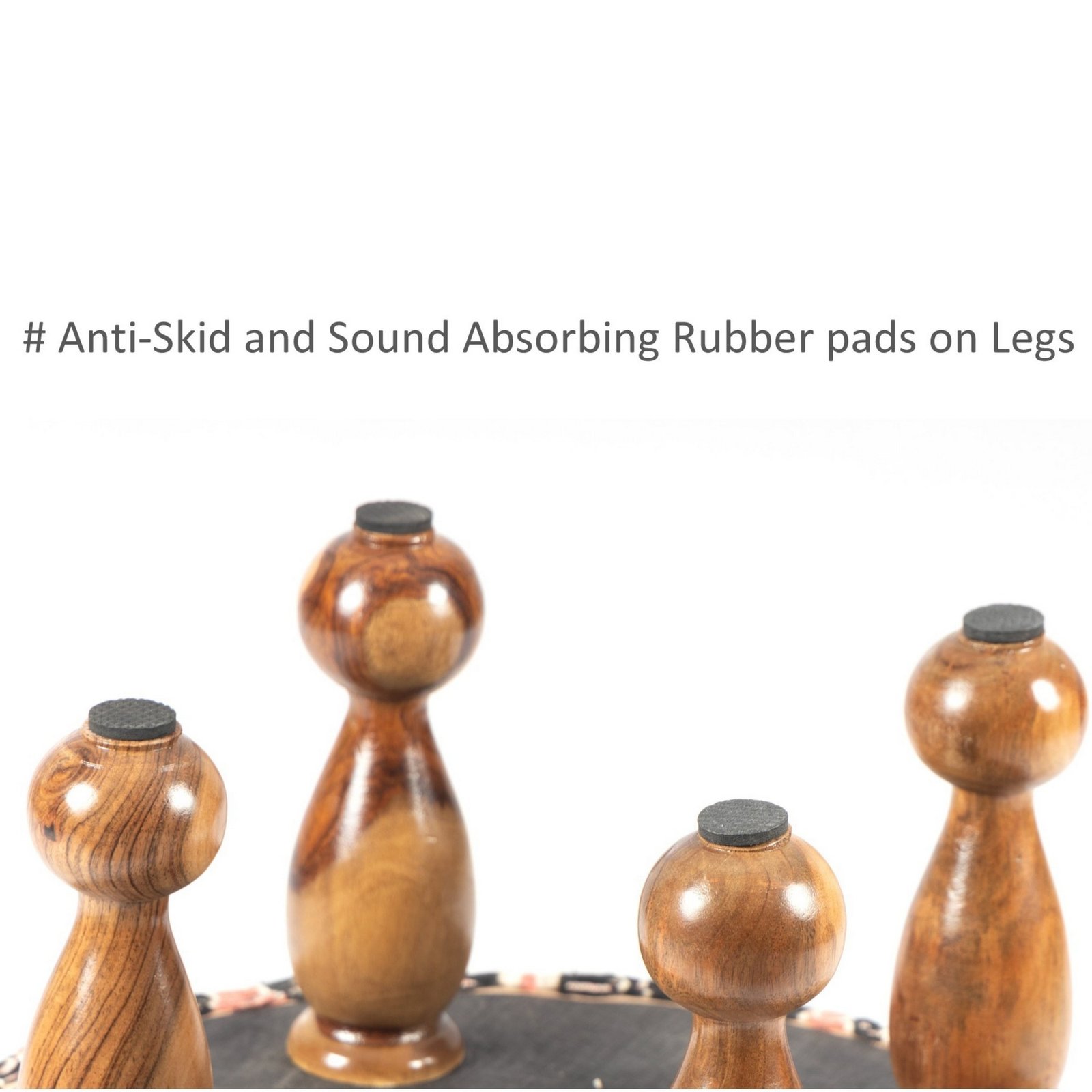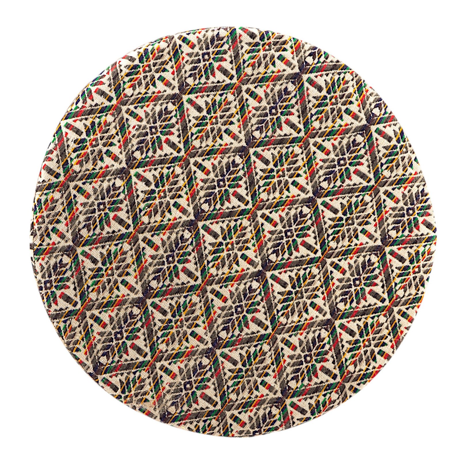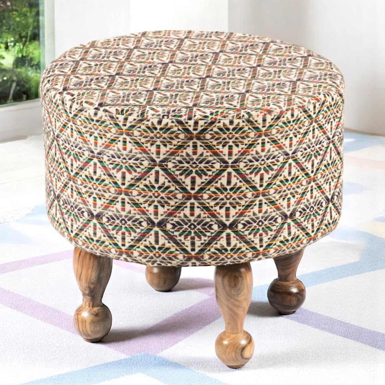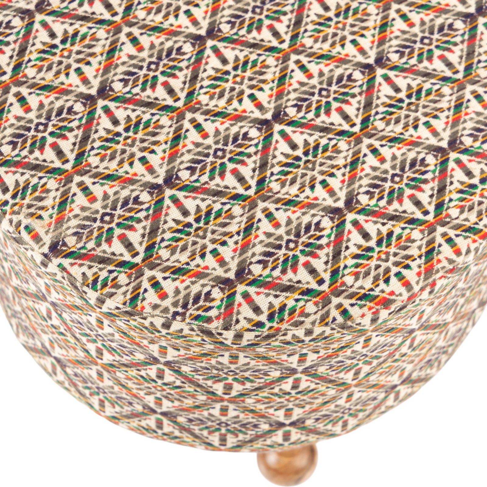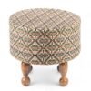 Ikiriya Louisville Acacia Wood Parisian Round Pouf Stool in Multi-Colour Jacquard Work Fabric Upholstery