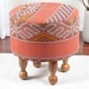 Ikiriya Louisville Acacia Wood Parisian Round Pouf Stool in Red Jacquard Work Fabric Upholstery