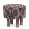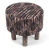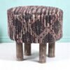 Ikiriya Morgan Acacia Wood Parisian Round Pouf Stool in Multi-Colour Jacquard Work Fabric Upholstery