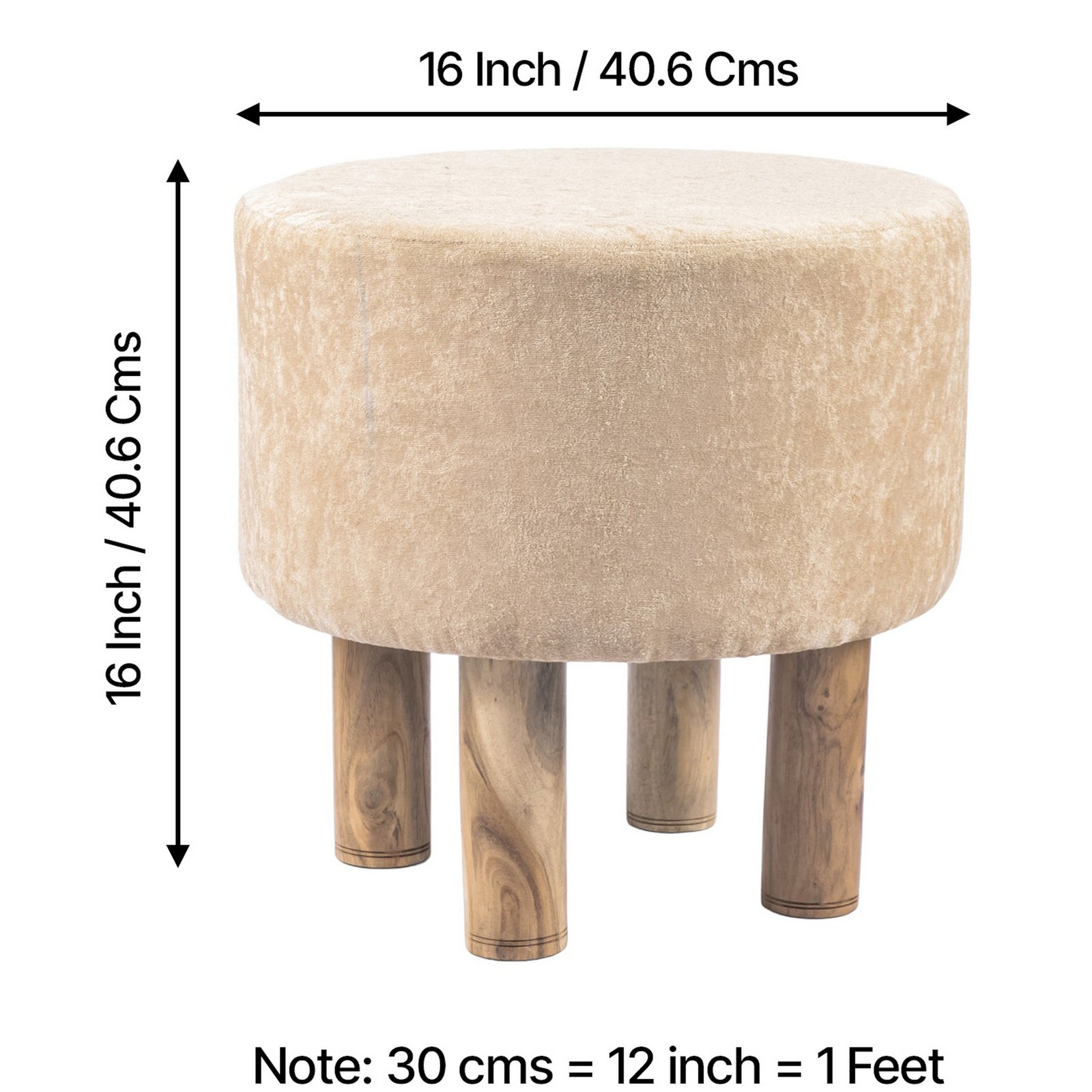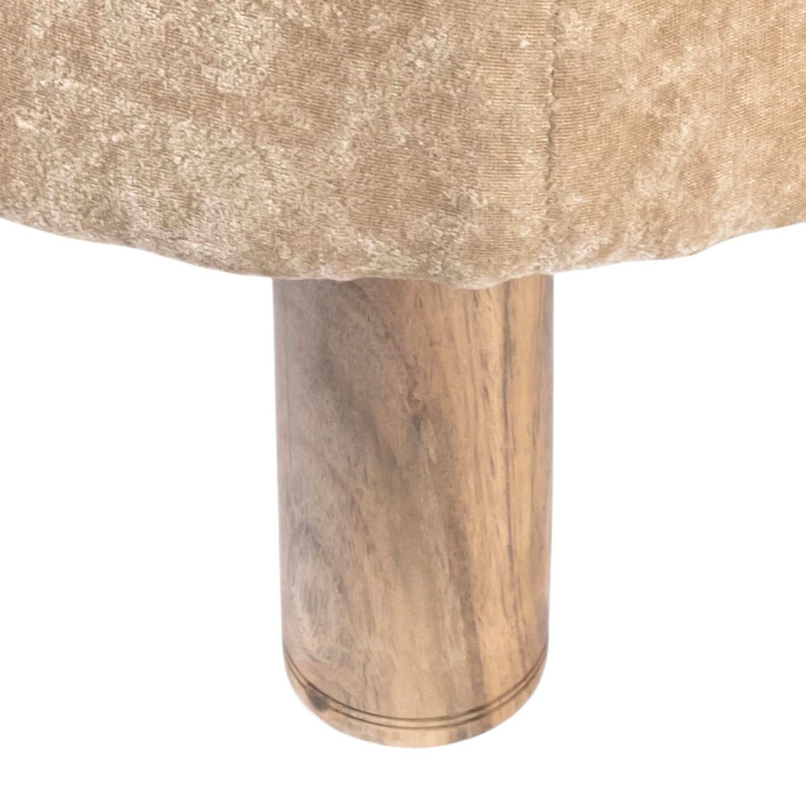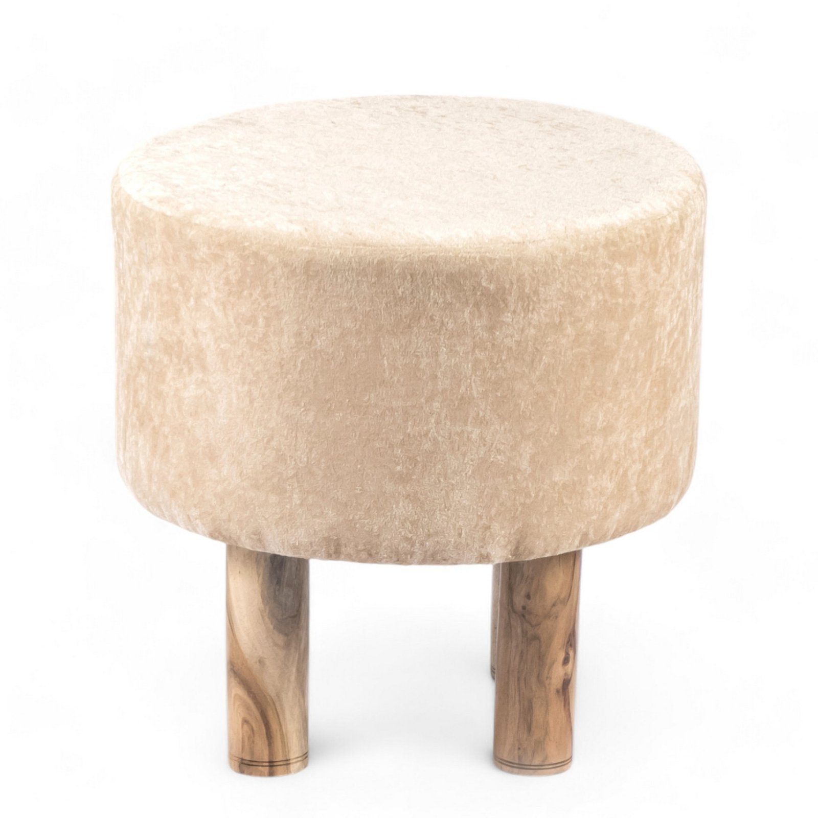 Ikiriya Morgan Acacia Wood Accent Round Pouf Stool in Beige Sparkle Velvet Upholstery
