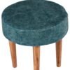 Ikiriya Nayla Sheesham Wood Contemporary Round Set of 2 Stools in Blue Jacquard Work Fabric Upholstery