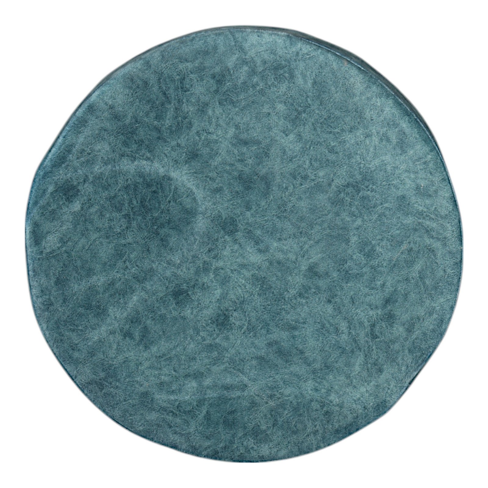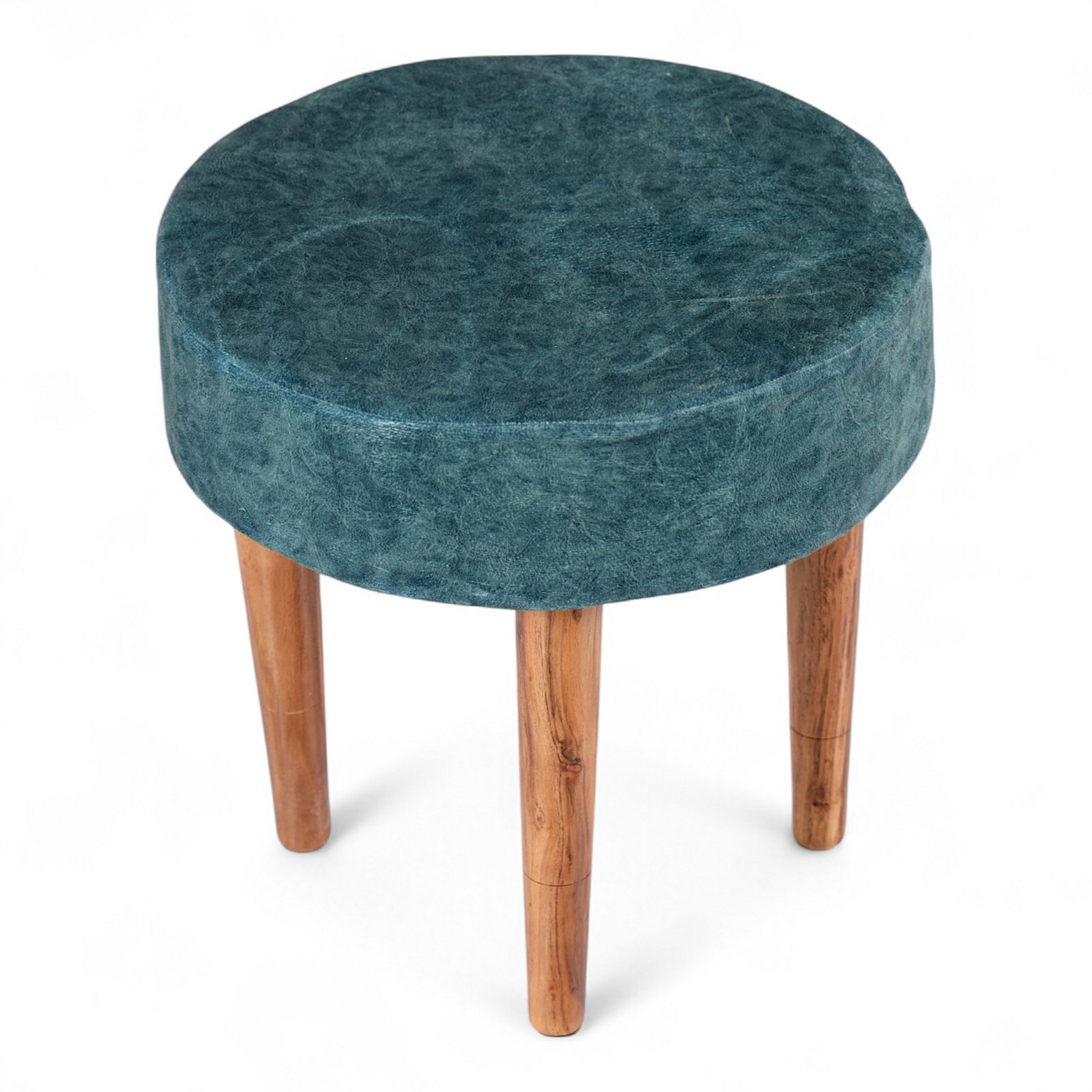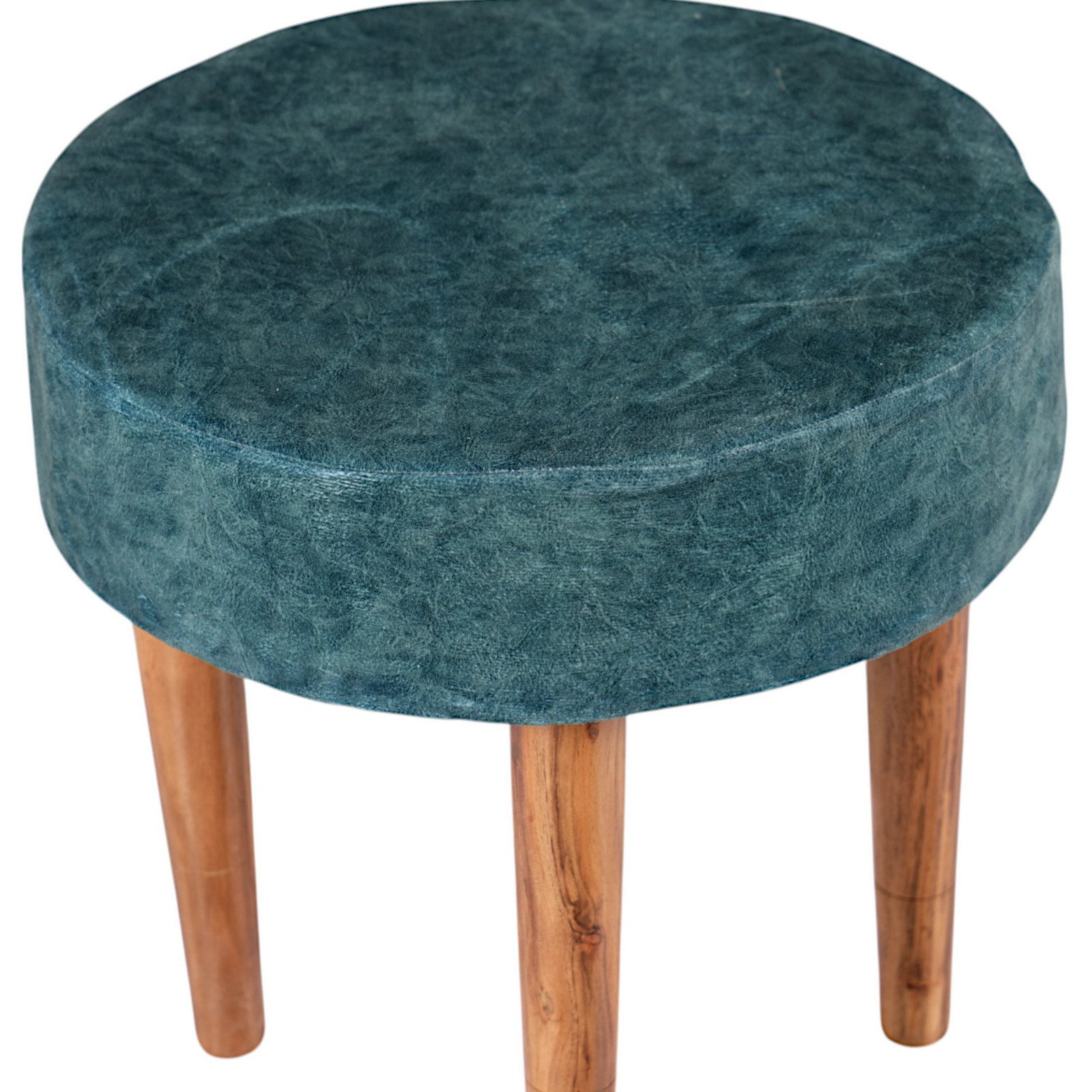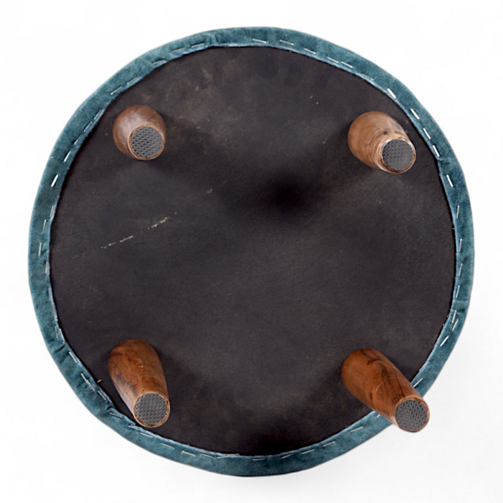 Ikiriya Nayla Sheesham Wood Contemporary Round Stool in Blue Jacquard Work Fabric Upholstery