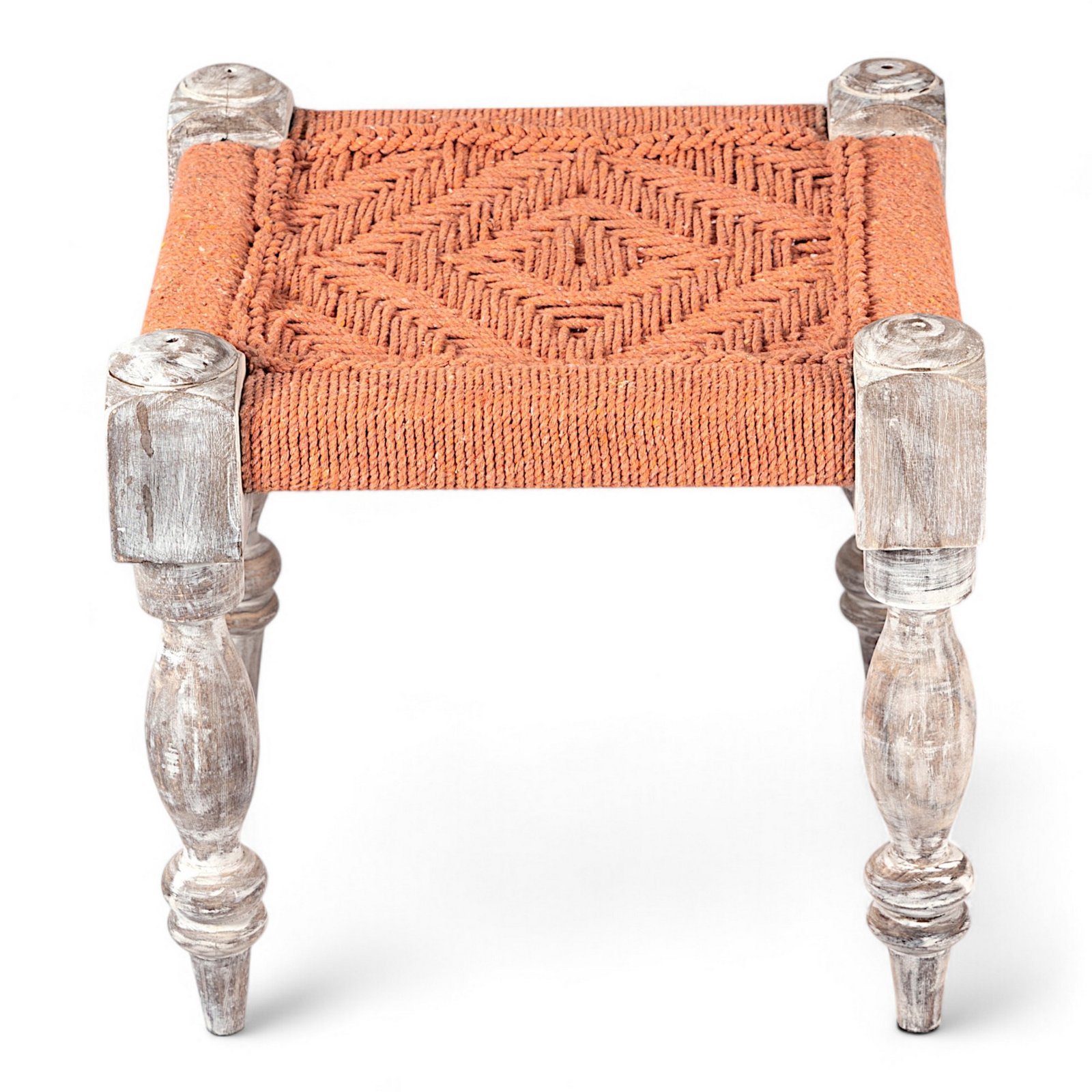 Ikiriya Riaza Sheesham Wood Vintage Square Maachi Set of 2 Stools in Orange Rope Canning
