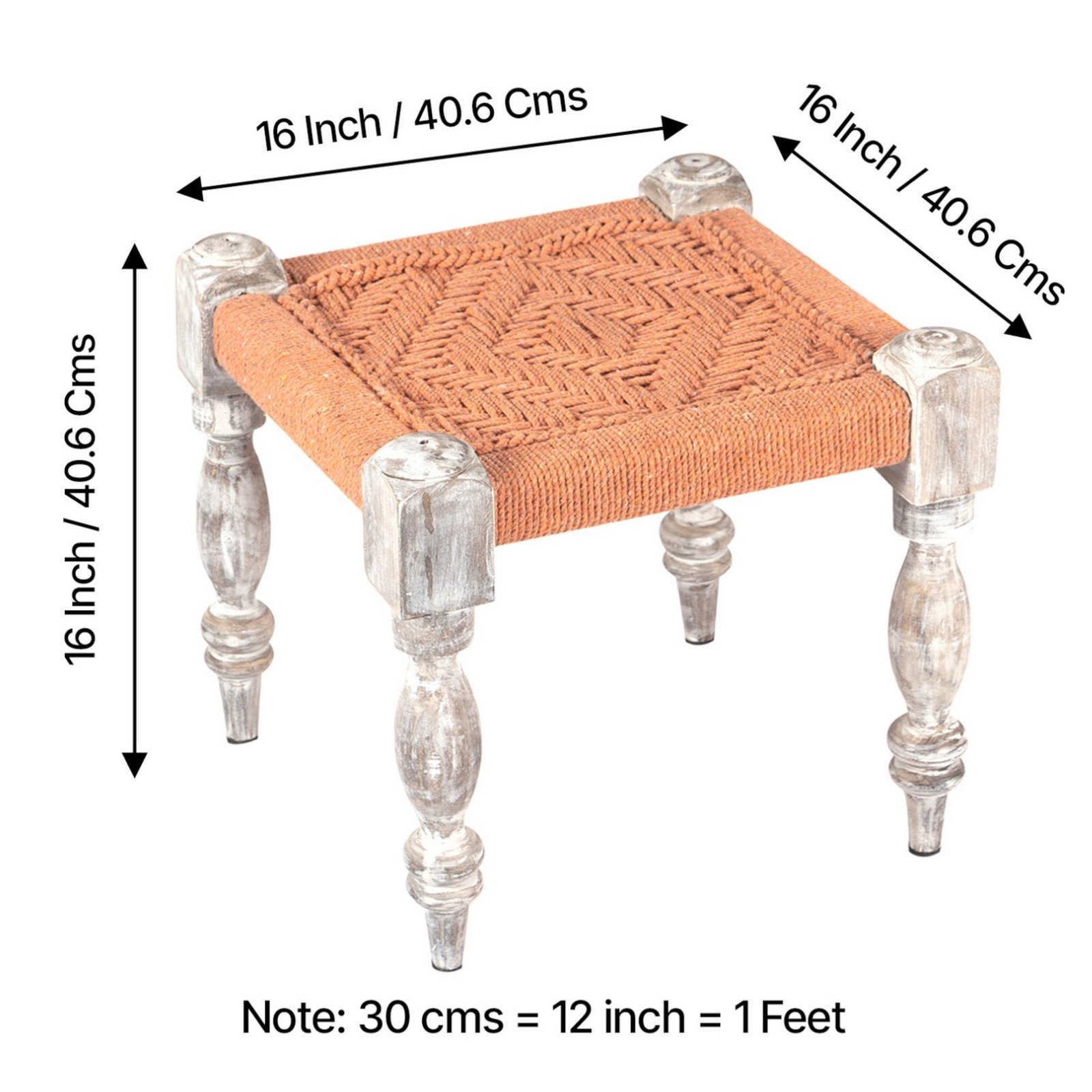 Ikiriya Riaza Sheesham Wood Vintage Square Maachi Stool in Orange Rope Canning