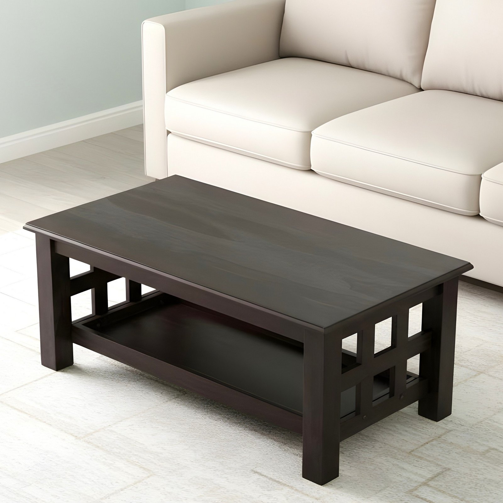 Ikiriya Blairs Sheesham Wood Accent Rectangle Coffee Table in Dark Mahagony Finish
