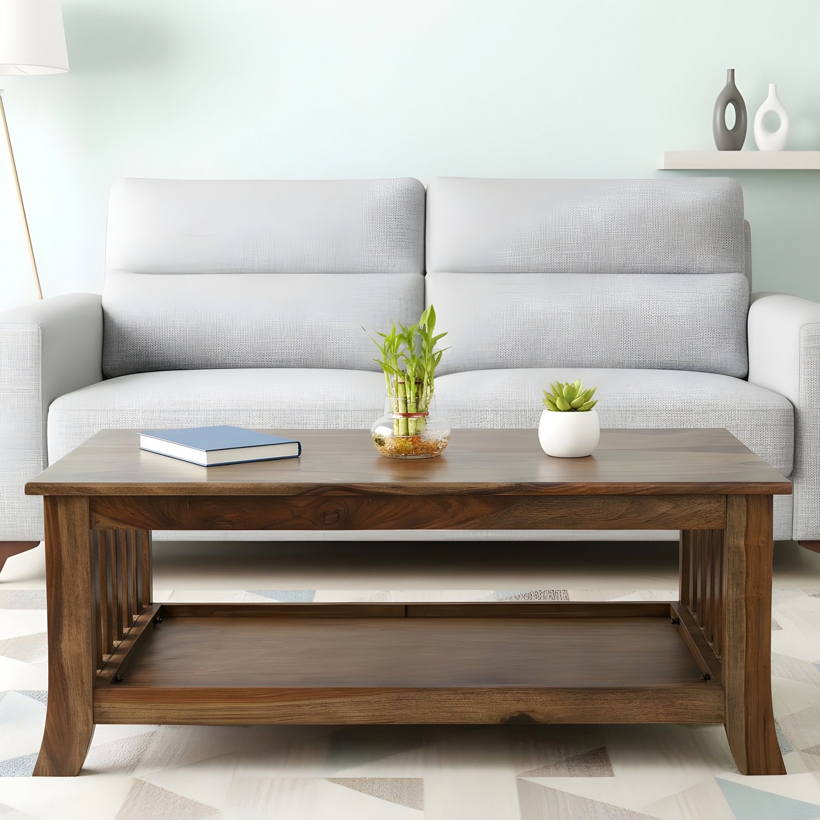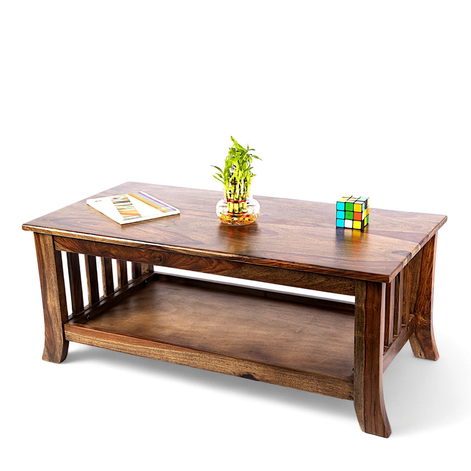 Ikiriya Blairs Sheesham Wood Accent Rectangle Coffee Table in Teak Finish