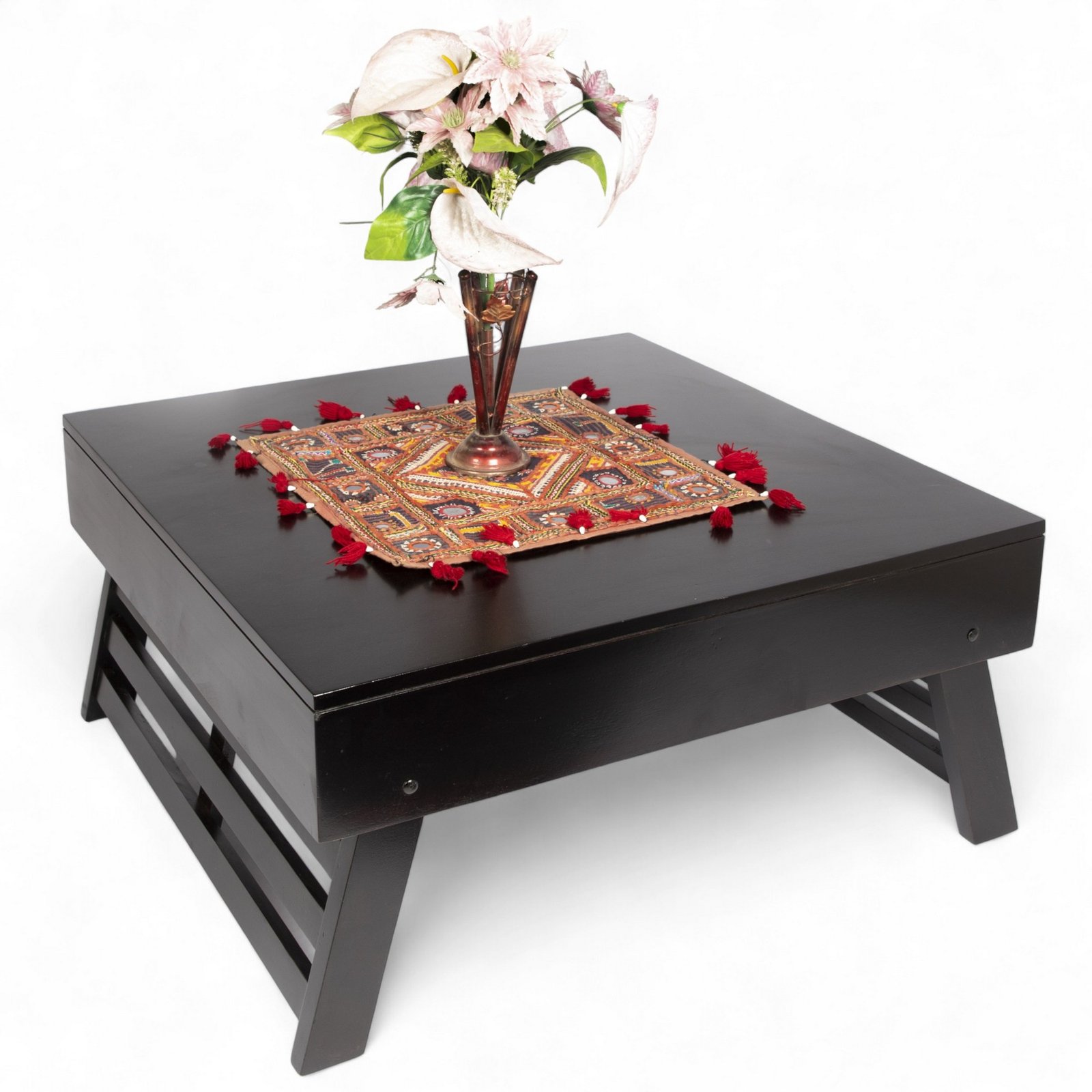 Ikiriya Bradford Sheesham Wood Contemporary Square Foldable Coffee Table in Extra Dark Mahagony Finish